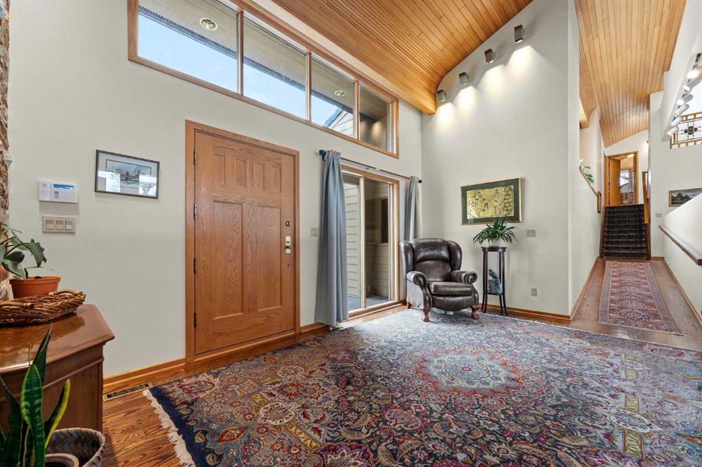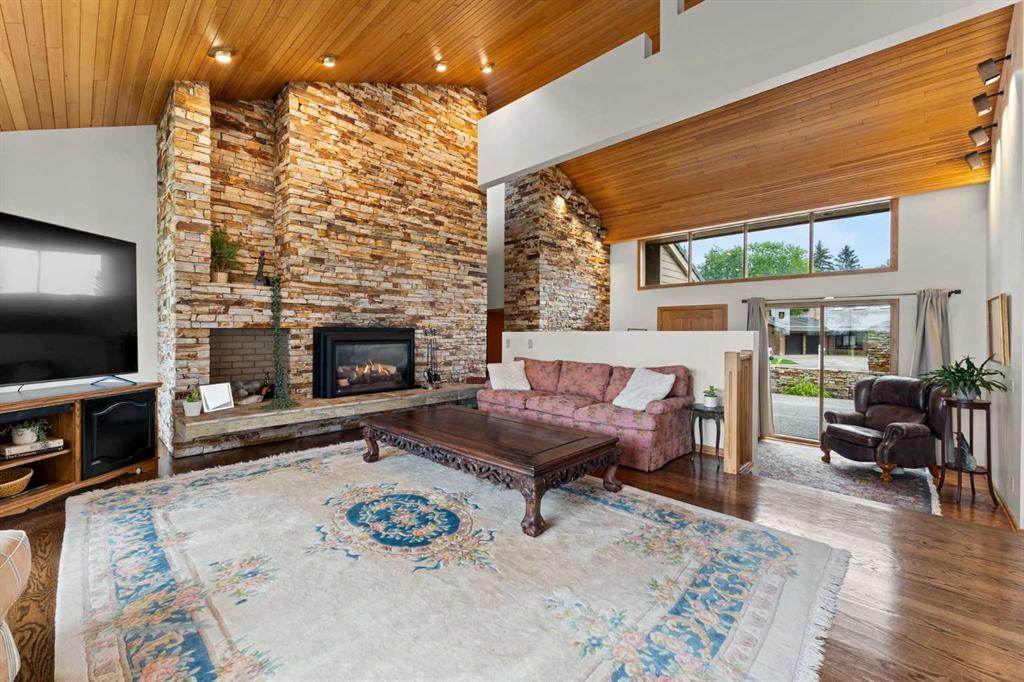 Experience the epitome of luxury living in this exceptional Bel-Aire estate, a true one-of-a-kind gem nestled in the prestigious executive neighborhood. This residence is a rare find, boasting a prized 1/4-acre lot with breathtaking views of the Glenmore Reservoir & Dam, the majestic mountains, and the serene Elbow River. This home offers an unbeatable location just a stone's throw away from the Calgary Golf & Country Club. From the moment you set foot on the meticulously manicured front yard and step onto the inviting front porch, you'll be captivated by the splendid curb appeal. As you enter, a grand boutique-style open space welcomes you, featuring vaulted curved ceilings that create an elegant ambiance that is perfect for entertaining. The dining room is generously proportioned, ideal for hosting the grandest of gatherings, and an abundance of natural light fills every corner of the main floor, thanks to the large floor-to-ceiling windows. A formal living room, anchored by a Rundle stone surround wood-burning fireplace, provides a cozy retreat with easy access to the grass-level back deck. The home is intelligently designed and divided into three sections, all accessible and catering to various needs. The north wing offers three bedrooms and two baths, with the primary bedroom boasting a luxurious ensuite, a spacious walk-in closet, and a private deck. The south wing houses the living area, an efficient kitchen, laundry facilities, and an upstairs office or potential fourth bedroom, flooded with natural light. The lower level adds to the allure with an exercise and recreation room, a wine room, a fourth bath, a sauna, and ample storage space. As you step into the serene backyard, you'll be transported to a private sanctuary that belies its inner-city location. The expansive yard offers multiple functional spaces, perfect for outdoor gatherings, and gardening enthusiasts will appreciate the gardening opportunities. This home embodies grand luxury and opulence, yet it exudes a welcoming charm that is anything but pretentious. It is ready for you to transform it into your forever home. Moreover, its convenient proximity to the Glenmore Reservoir, Chinook Mall, Britannia Plaza, Calgary's extensive paved pathway system, and more make it an exceptionally located property.