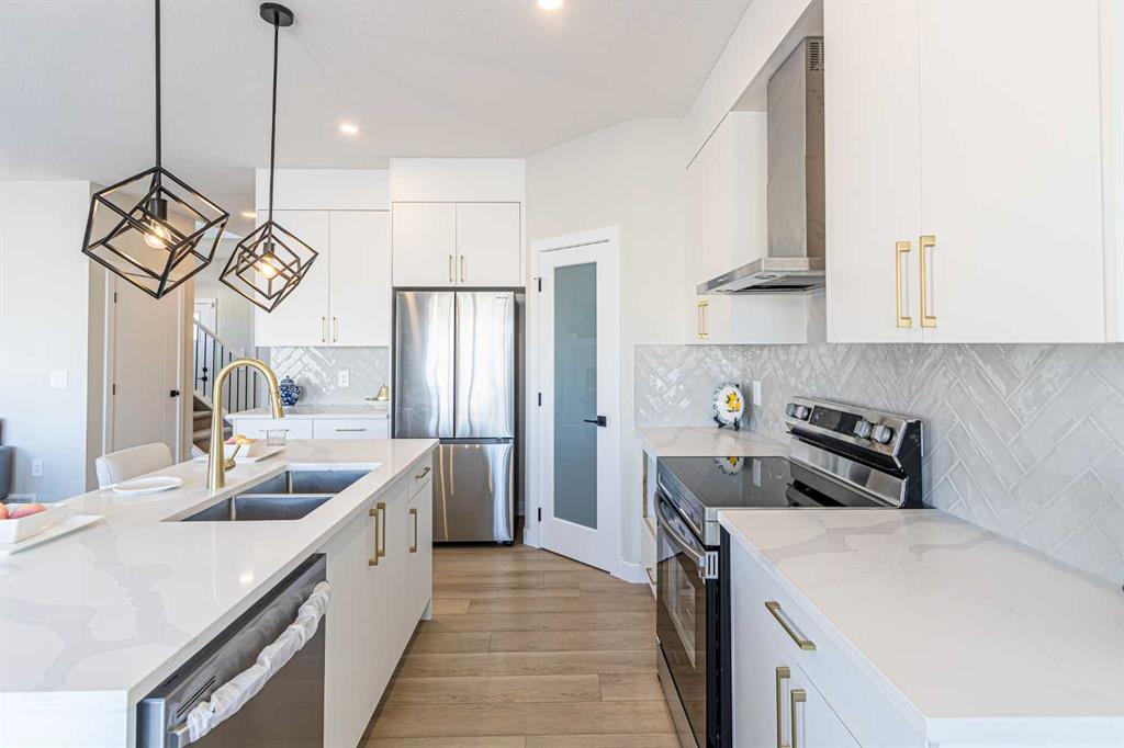 Public Remarks ***Showhome Leaseback , Quick Possession and Multiple Pre-construction lots available for homes ranging 1600 to 2100+ sqft homes (specs vary)*** FRONT DOUBLE GARAGE , 3 Bedrooms + Bonus Room + Den | 2.5 Baths | The most popular Moana model, on a 33 feet wide lot, situated in the Waterford Community, minutes from the lake. Experience the epitome of open concept living, featuring upgrades such as 9 ft Ceilings on main floor and basement, metal spindles on railing, 3cm quartz countertops, LVP flooring, under mount sinks convenient upstairs laundry and so much more! Great room includes an electric fireplace which adds style and warmth perfect for chilly nights. The kitchen is completed with a huge island, perfect for gathering families and friends, soft close cabinets and drawers throughout, spacious pantry plus extra counter space, new appliance package including chimney exhaust fan, smooth top electric range, built-in microwave and UPGRADED refrigerator and dishwasher. The dining room can host a big family. Upstairs, indulge in the comfort of your perfectly sized central bonus room, ideal for streaming your favourite movies. Retreat to the spacious master suite with an ensuite and walk-in closet for a relaxing escape. The conveniently located laundry room and two secondary bedrooms, both with walk-in-closets, complete the second level. The basement is unfinished but comes with 9 feet ceilings, separate side entrance and a mechanical room moved to a corner. Proximity to the CALGARY, schools, diverse retail and culinary delights are just some of the highlights. Call to book your showing now !!!!!!!