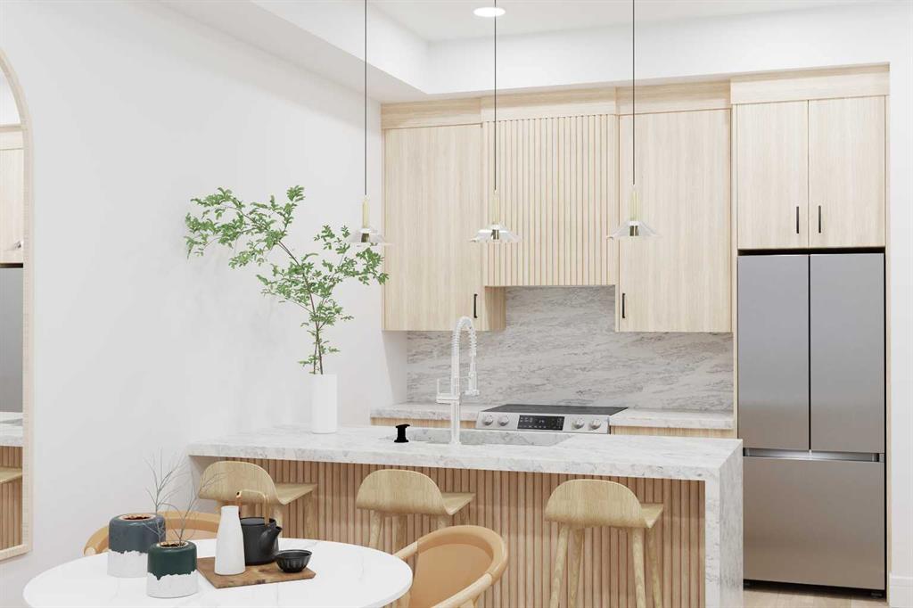 Welcome to Dean's Landing by Rohit Homes, where contemporary design meets urban convenience in Calgary's sought-after University District. This stunning new build condo offers the perfect blend of luxury, functionality and convenience making this an ideal spot to call home. This 1 bed, 1 bath and den apartment boasts high end finishings, in suite laundry, waterfall quartz counter tops, triple pane floor to ceiling windows and a private balcony. Best of all, you can choose from one of three Designer Interiors curated by award winning designer Louis Duncan-He, giving your new home the chic, elegant or bold feel you desire. All purchases come with a titled underground parking stall and A/C rough in for added convenience. Get in touch today to discover more great opportunities like this in Dean's Landing.