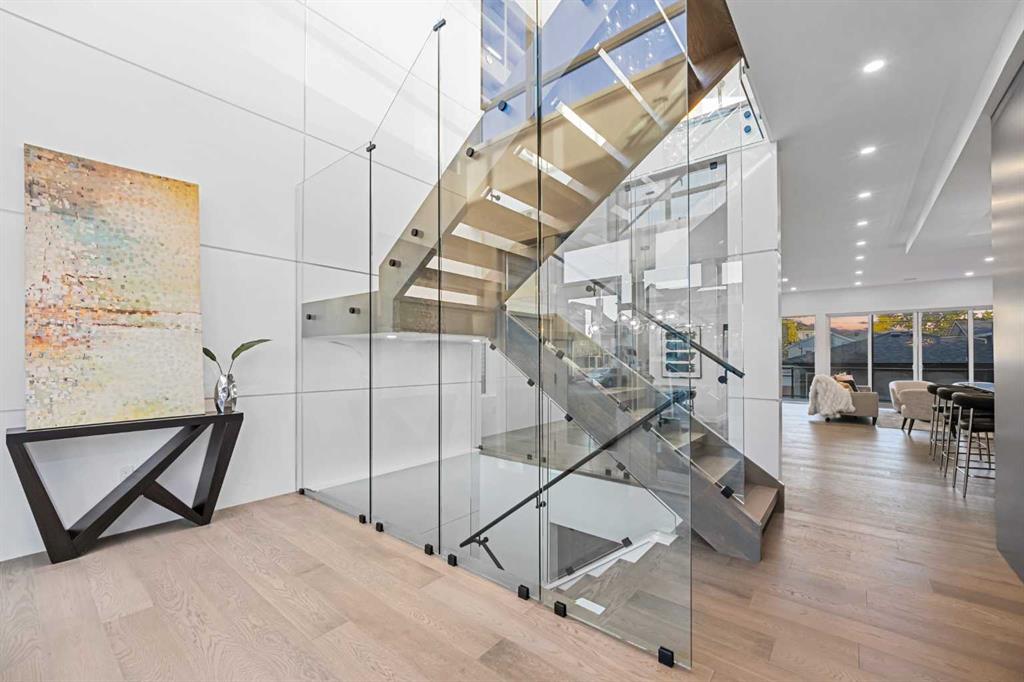 Silverpoint homes and Paul Lavoie Interior Design present another spectacular creation in our Luxury Bridgeland Ridge Collection, A sprawling 4400 square feet, unbeatable high quality craftsmanship on 3 levels, at an excellent price. Full Hardwood flooring above grade. Quartz and lavish tiling adorn this home, which showcases a fantastic thought provoking floorplan. Exceptionally perfect for a large or growing family. As you enter the grand foyer, soaring 2 story ceilings welcomes you. The main level continues to the sprawling entertainment hub with a huge living room, 10 foot ceilings, and Chef's kitchen, with ample custom cabinetry, including a separate butlers pantry. This exceptional kitchen space has everything you would expect from a home of this meticulous design. A huge quartz island, top line Sub Zero and Wolf appliances which includes a custom panel fridge, wall oven, and a speed oven/microwave, as well as a large gas cooktop with an overhead 500 CFM hoodfan. Porcelain tile backsplashes gleam accross the kitchen. A Separate formal dining room is perfect for those large family dinners. Large sliding glass doors seamlessley usher you to a large composite back deck, seamlessly extending the main living space into the outdoors. The comfortable living room showcases an ultra modern 3 sided fireplace, cladded with a porcelain slab. Of course, a huge mud room with custom cabinetry, DOG wash, and powder room. Glass railings lead you to the second level, featuring your Primary Bedroom, with full city and mountain views, showcased with vaulted ceiliings. A beautiful retreat with a cafe bar corner. An amaing spa ensuite with STEAM SHOWER, heated tile everywhere you look including the shower bench and floors. A freestanding tub , dual sinks, dresser table, and a course a huge walk-in closet. This level also includes a family flex lounge, library, flanked with book shelves, and amazing city of views. ]The additional two large bedrooms, with large closets, full ensuites and large east facing windows are perfect for the kids. The spacious laundry room is also located on this level. The Finished basement is waiting for your favourite game table, and media space. An optional glass enclosed gym, or flex room area, as well as a fully climate controled wine room with glass doors. The fourth bedroom is spacous, private and shares another full bath. An abundance of floor to ceiling glass walls adorn this one of a kind home. A truly amazing location in one of the cities premier inner-city communities where city view lots are now becoming increasingly sparce. Close to all amenities, schools, shopping, some of the cities best restaurants, dog parks and easy access to downtown. Dont miss out on this special and unique new home. Silverpoint homes offers a 2 years builders warranty for peace of mind, plus the certified new home warranty program. This is the perfect space for the discerning family , in search of luxury living in a truly perfect location.