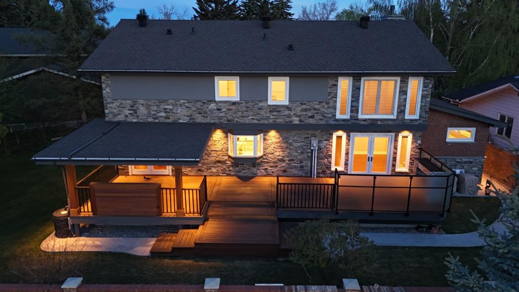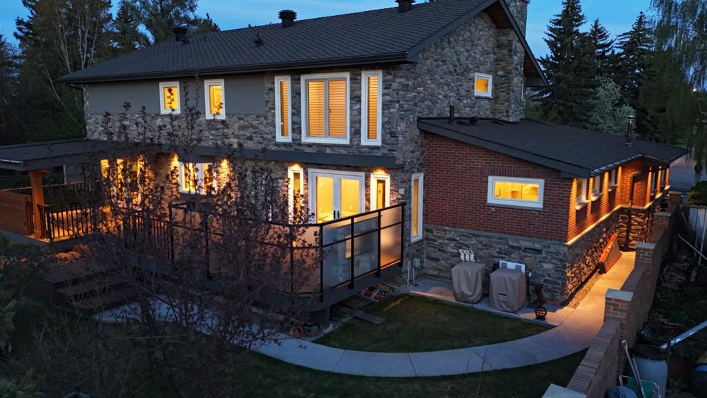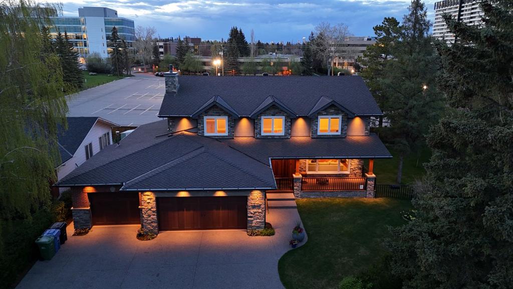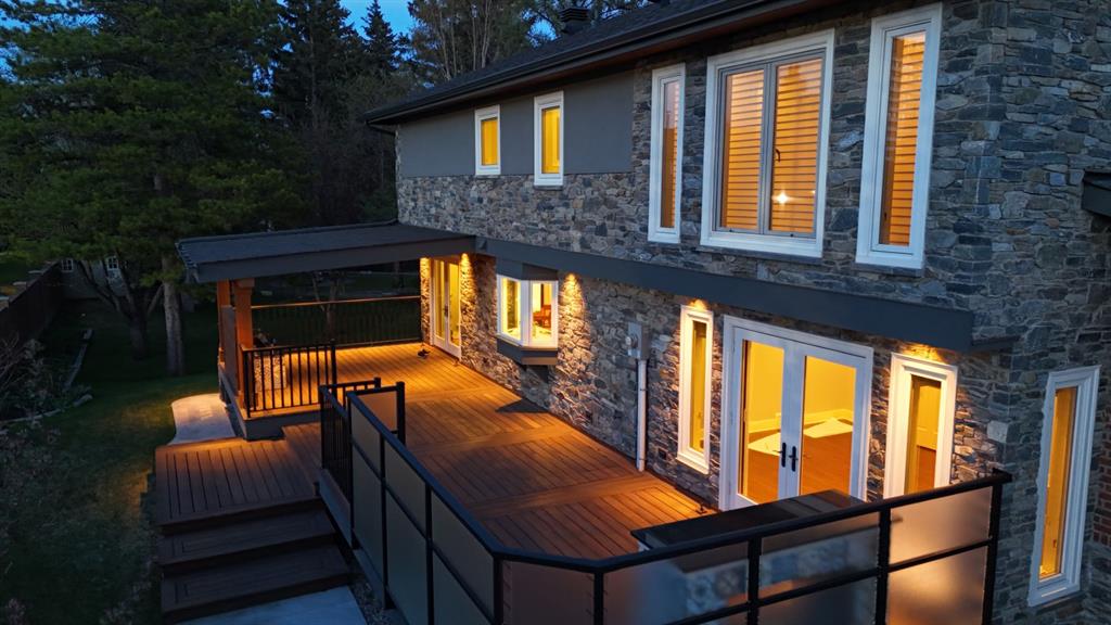 Welcome to this immaculate custom-built home nestled in a tranquil cul-de-sac on a beautifully manicured quarter-acre lot in the prestigious Kelvin Grove neighborhood. This fully renovated home epitomizes luxury and sophistication, featuring the highest quality fixtures and finishes inside and out. Every detail has been meticulously considered, leaving no stone unturned in creating this masterpiece. The home's exterior exudes timeless elegance and superior craftsmanship. A master stonemason crafted the facade, which features a striking combination of brick and quarried stone. Numerous large windows flood the interior with natural light and offer stunning views of the manicured garden. Topped with 50-year-rated asphalt shingles, this residence promises durability and peace of mind. Thoughtfully designed exterior lighting enhances the architectural features, adding enchantment to the evening ambiance. Step inside through the Custom Solid Wood Mahogany door and be greeted by a stunning entryway with an opulent curved wooden staircase by Artistic Stairs. The main floor offers a sunny living room, a sophisticated dining room with garden views, and a custom kitchen with Thomasville solid wood cabinetry, thick Silestone Counters, a Sub-Zero refrigerator, and a matching KitchenAid 5-burner gas cooktop with dual built-in ovens. Designed for multi-generational living, the main floor includes a spacious bedroom suite with a luxurious spa-like ensuite with Granite Counters, a walk-in closet, convenient laundry facilities, and private access to the deck and backyard. The grand staircase leads to an upper lounge with a cozy fireplace and a versatile flex room or office space. The primary suite features a large walk-in closet with California Closet organizers, a dual-fixtured steam shower ensuite with premium fossil stone, exquisite tile craftsmanship, a Victoria + Albert soaker tub, dual sink vanity, and heated floors. The second bedroom includes its own ensuite with Granite Counters and walk-in closet. The expansive lower level is an entertainer's dream. It includes an additional bedroom, half bath, and a catering kitchen that could easily be repurposed into a bedroom or recreation area. The fully finished and heated three-car oversized garage is a masterpiece, featuring ultra-thick concrete over thick insulation, epoxy floor coating, and its own sub-panel, ideal for equipping an electric charging port. Surrounded by lush greenery, mature trees, and established perennials, the home's exterior is fully irrigated by an underground sprinkler system. The welcoming front veranda and large covered back deck are thoughtfully built with exotic Kayu Wood and feature custom-tiled gas fireplaces, adding to the home's charm and elegance. Located close to Rockyview Hospital, Chinook Mall, and Glenmore Reservoir, with excellent schools, parks, and amenities nearby, this home offers unparalleled convenience. Completely renovated inside and out, this home is truly one-of-a-kind.