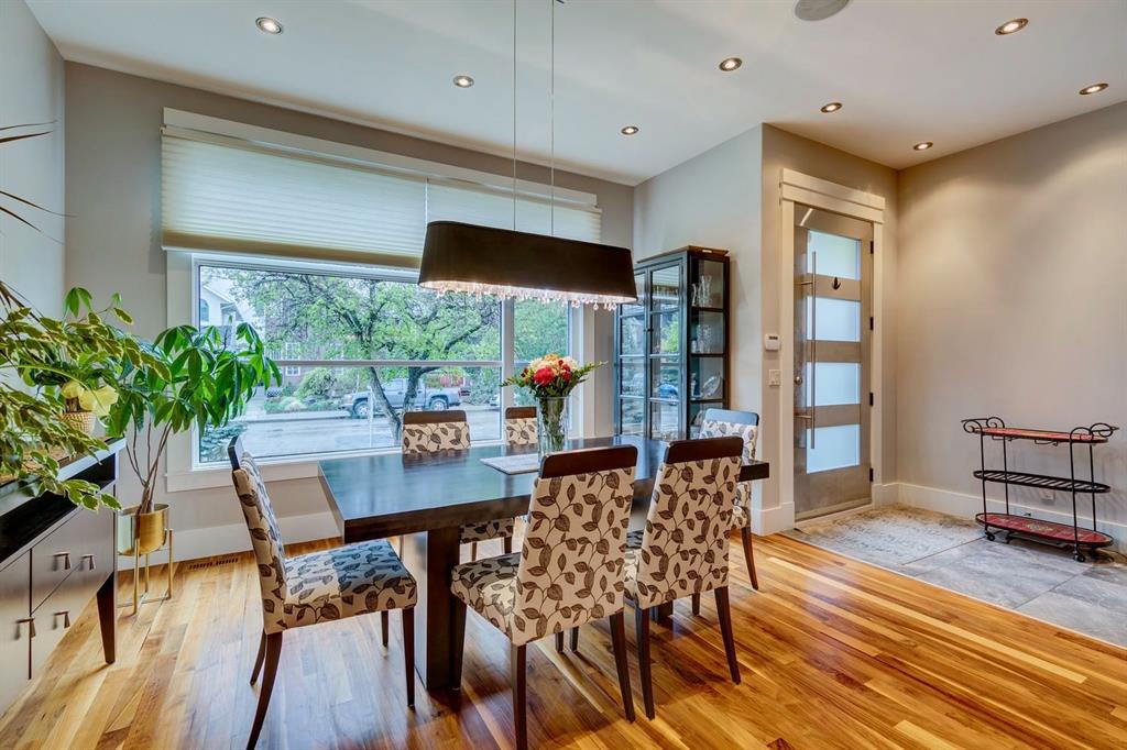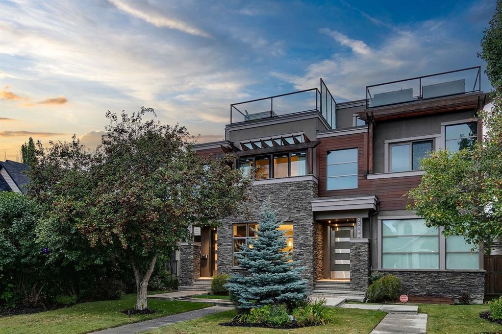 A remarkable contemporary inner city home meticulously designed with a functional layout spanning over 3,550 sq ft of developed living space sitting on a 130' deep lot. Adorned in natural light on all levels, with an open floor plan, this incredibly maintained home showcases site finished walnut hardwood, hunter Douglas blinds with remotes, and beautiful millwork throughout. A front formal dining room presents designer light fixtures and overlooks the font street through a large picture window. Centrally located and ideal for entertaining is the kitchen with top of the line appliances including Subzero fridge and Viking 6 burner gas stove, a massive quartzite island, 1 of 3 wine refrigerators, an abundance of cabinetry, and contrasting granite counters. Warm and inviting is the rear living room with a gas fireplace, custom display/bookcases and glass doors opening up to a private oasis backyard. As you ascend to the second level you'll be greeted by a full bath, convenient laundry and three generous bedrooms, including the primary retreat. The tranquil primary is highlighted by soaring ceilings, a private balcony, and unique dressing room with corner bench and windows. A 6pc lavish ensuite offers in-floor heat, deep soaker tub, and glass enclosed steam shower with rain feature. The third level will leave you in awe with how bright it is from the 6 skylights and abundance of windows. This space is ideal for entertaining revealing a massive wet bar, wine cellar, built-in book shelves and wall unit. Continue the party outside as you take in the views from your rooftop patio complete with gas line hookup for a fire table. As you descent to the lower level, you'll find the perfect spot for a man cave with a huge custom media centre, massive wet bat and another wine cellar. A fourth bedroom and full bath is favourable for teens or guests. The home is wired throughout with built-in speakers and offers a quiet setting with the concrete party wall. Stepping outside to your exquisitely finished backyard oasis you'll find a beautiful deck with custom bench and pergola, and a concrete patio complete with a wood burning fireplace to cozy alongside in those cooler Calgary evenings. A double detached fully insulated and heated garage includes a vault for additional storage! Close to the Bow river pathway system, schools, the shops/restaurants of trendy Kensington, Foothills and Children's hospitals, UofC, SAIT, and minutes to downtown. Come personally explore this exceptional home to genuinely appreciate how truly special it is.