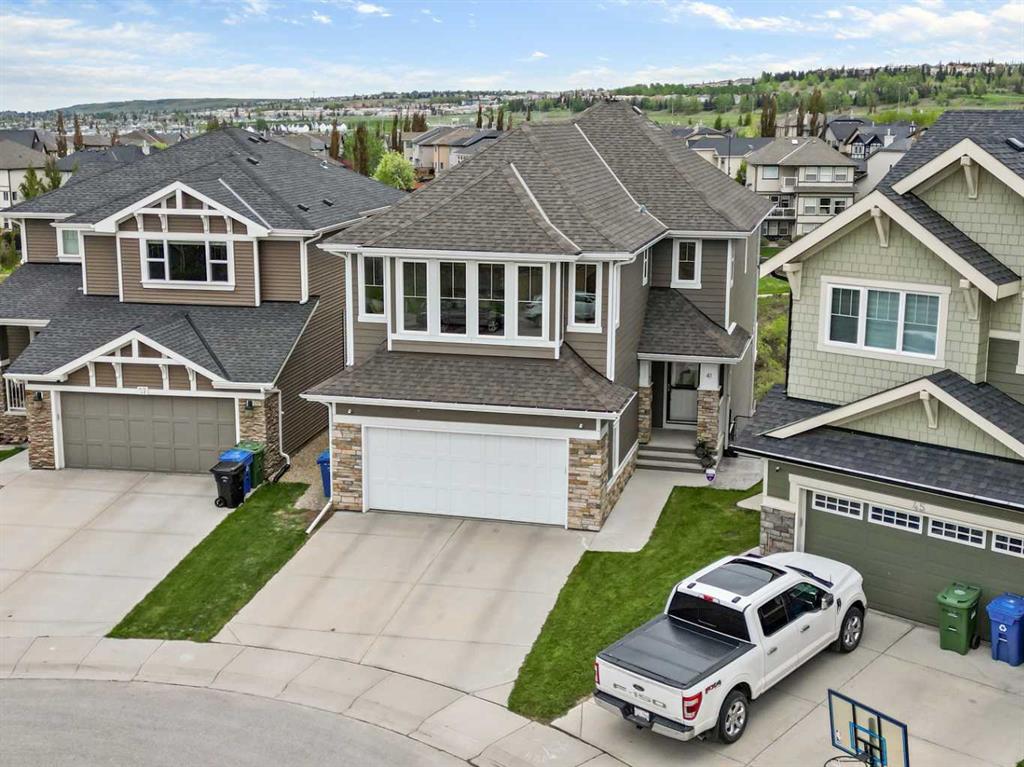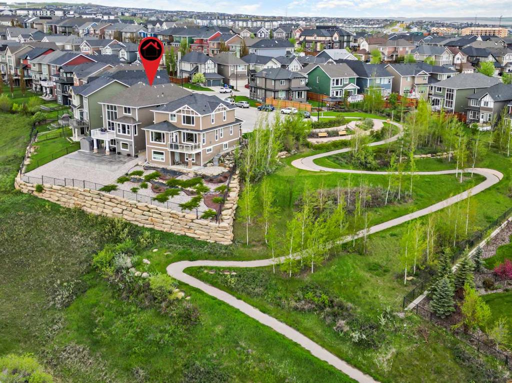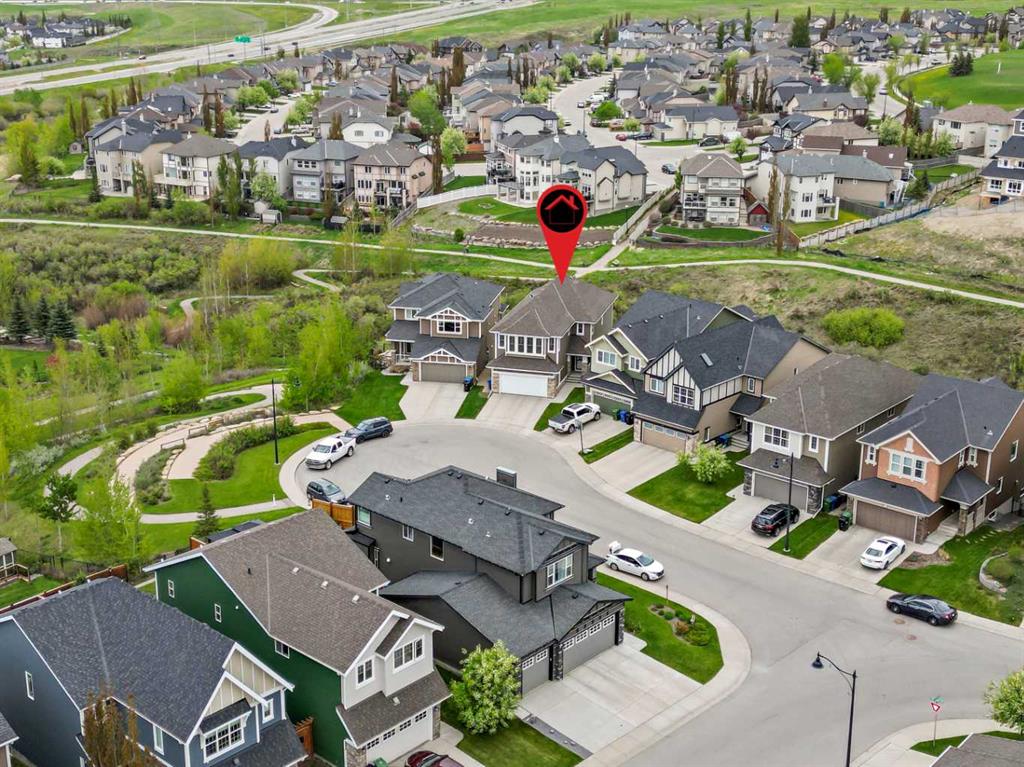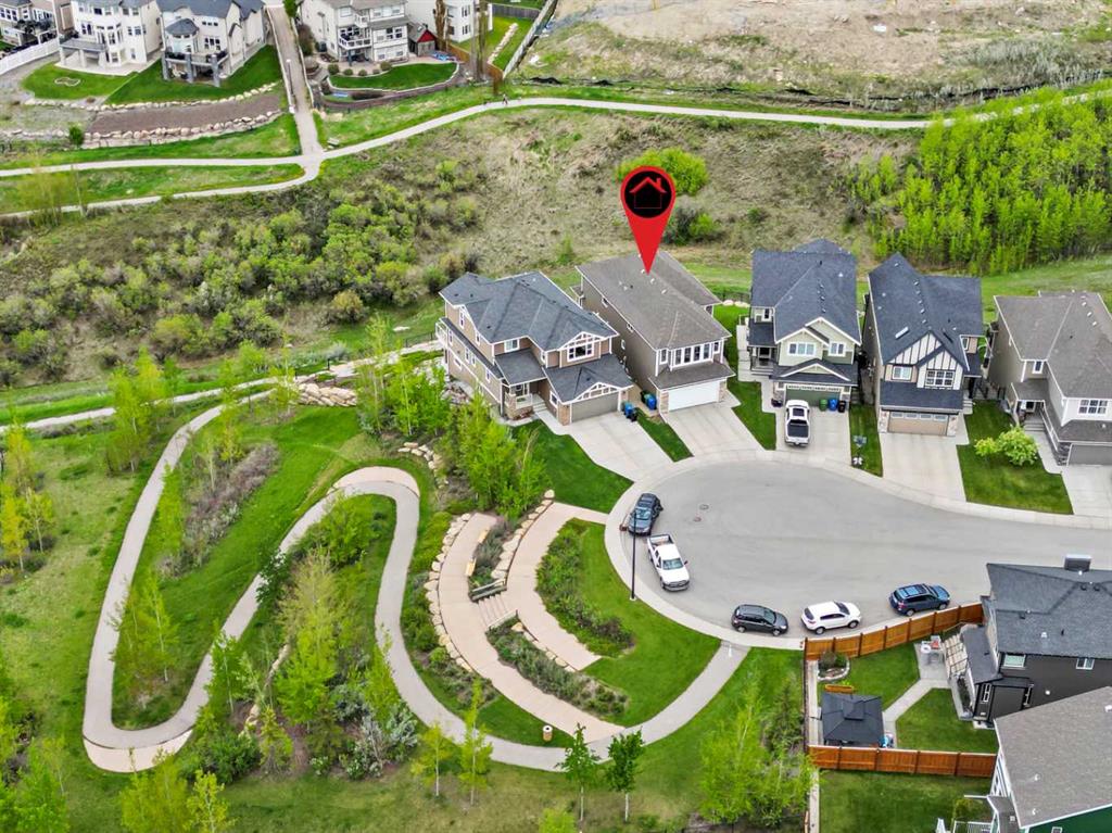 Welcome to this stunning custom-built home with breathtaking panoramic views! This 4-bedroom, 3.5-bathroom beauty is nestled on a pie-shaped lot in a quiet cul-de-sac, backing onto a ravine. Imagine sipping your morning coffee while watching the sunrise, or hosting a fire-pit party under the open starry sky in the expansive South-facing backyard. Step inside to find a sun-drenched living room with a soaring 17 ft high window wall and a stone wall fireplace adding opulence and warmth. The gourmet kitchen boasts granite countertops, stainless steel appliances, and a walk-in pantry. The spacious flex room is perfect for a home office or library, and the main floor also features a half bath and a mud room. Upstairs, you'll find a spacious bonus room with a vaulted ceiling, a large master bedroom with an ensuite bath and walk-in closet, and two more spacious bedrooms with a shared bathroom. The fully finished basement with 9 ft ceilings offers an expansive open area for entertainment and relaxation, a roomy bedroom, a 3-piece bathroom, and a convenient Murphy bed for guests. Not only does this home offer luxury, but it also provides functionality and quality. The oversized 2-tier patio allows you to get closer to the occasional wildlife visitor from the ravine, and the multi-zone heating and central air conditioning ensure your comfort year-round.The furnace and air ducts were cleaned in June 2024. Located just minutes away from major shopping centers and with quick access to major roads and public transportation, this home is also in the highly sought-after “Sir Winston Churchill High School” district and near Nose Hill Park and scenic pathways. Don't miss the opportunity to make this your dream home! Book a viewing with your favorite Realtor today.
