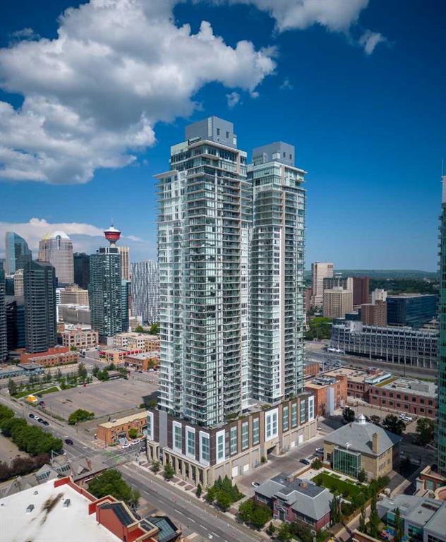 Welcome to The Guardian South, Calgary’s TALLEST residential tower. Once you step into this elegant 2 bed & 2 bath corner unit, you will notice the abundance of natural lighting and the HIGH 9.5’ CEILINGS which is a foot higher than other units in the building. Discover the essence of relaxation and entertainment as you step onto your MASSIVE wrap-around balcony with 782 square feet of private outdoor patio space. Just imagine the extraordinary unobstructed views of the vibrant fireworks during Stampede from your private space as you host gatherings or unwind after a long day against Calgary's backdrop. The modern kitchen is a culinary masterpiece, with seamlessly integrated European appliances that redefine convenience and style. Indulge in the design of Armony Cucine cabinetry from Italy, boasting a sophisticated silent suppression closing system in both bathrooms and the kitchen. Your everyday rituals will transform into moments of sheer luxury with the induction cooktop, featuring a modern touchscreen control that guarantees seamless cooking experiences and effortless cleanups. Experience a lifestyle enriched by an array of amenities – from the welcoming concierge to the well-equipped gym, invigorating yoga studio, social lounge and a versatile workshop catering to your creative projects. Pixel Park is just steps away which includes a skateboard plaza, pickleball and basketball courts, an off-leash dog park and EV charging stations. This property also offers proximity to plenty of entertainment options, restaurants, bike paths, the iconic Stampede grounds and the new BMO centre. With Calgary’s upcoming new arena in the vicinity, the possibilities for enjoyment are endless. Check out the VIRTUAL TOUR and book an appointment to view your new home today!