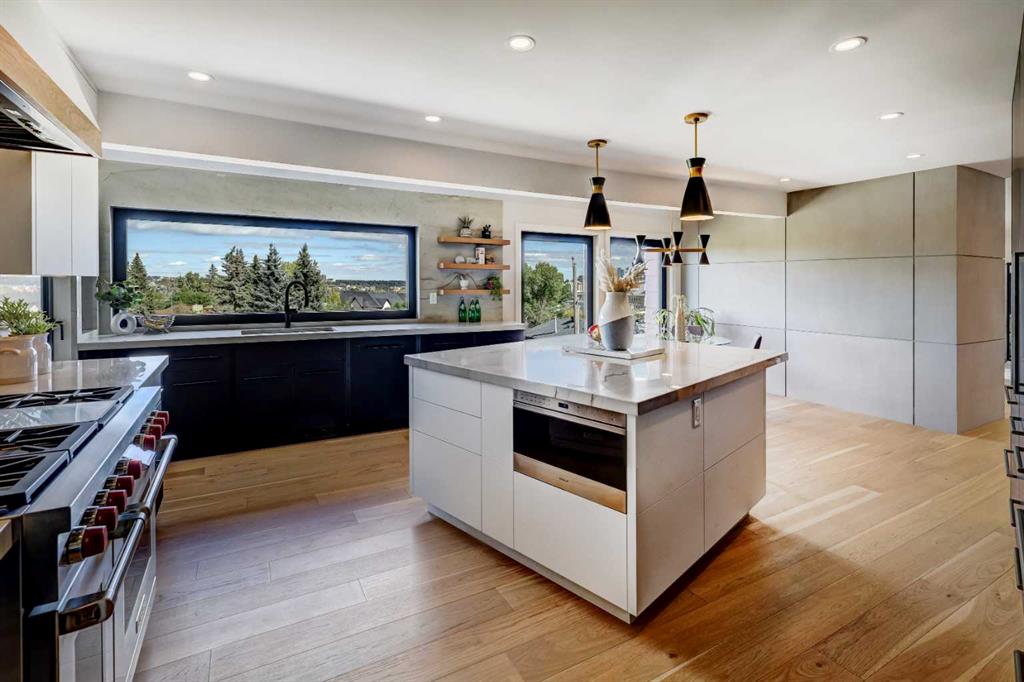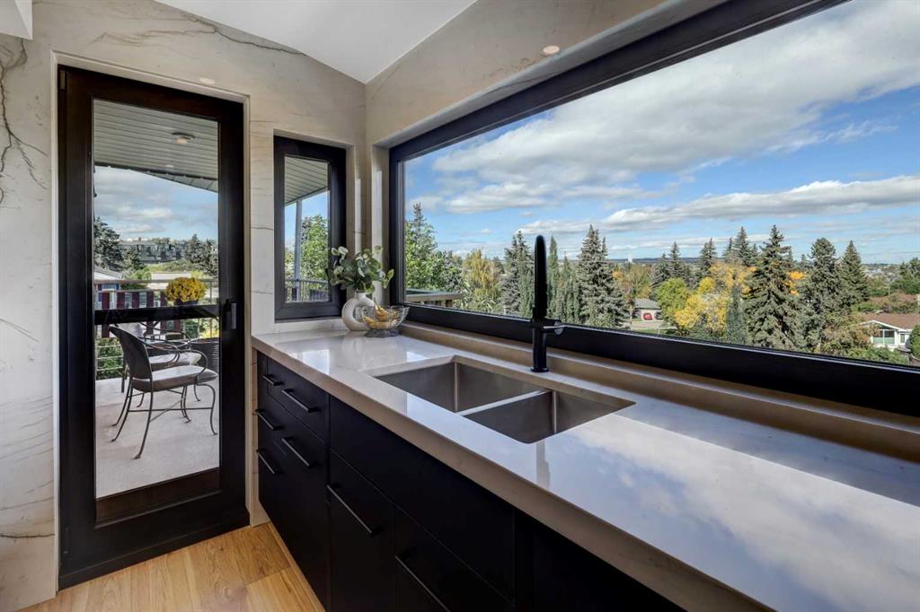 HOME SWEET HOME! This is your RARE OPPORTUNITY to own this breathtaking, RENOVATED, luxurious bungalow in UPPER SCARBORO on a massive 70’ x 115’ lot with mature landscaping. Featured in this dream home are 5 bedrooms, 3.5 bathrooms, 4,410+ SQFT of magnificently modern living space professionally designed by Melinda Richardson at Premise Design, exquisite curb appeal and pride of ownership throughout. The main floor offers a spectacular open concept layout loaded with natural sunlight, PANORAMIC, DOWNTOWN SKYLINE VIEWS and sleek finishing's. You will find a large living room with floor to ceiling windows & cozy concrete panel wood burning fireplace, formal dining room, DREAM GOURMET CHEFS KITCHEN with a focal point center Quartztile island, backsplash & walls, eating bar, sophisticated lighting fixtures, sleek 2 tone/black cabinetry, walk-in pantry, pull-out pantry shelves & premium stainless steel appliances including a 48” Wolf stove, Sub-Zero refrigerator, Wolf microwave drawer & Miele dishwasher. Completing the floor is a generous sized bedroom/office, lavish 2 piece vanity bathroom & the prestigious primary bedroom with two closets & spa-like 5 piece ensuite bathroom with double vanity sinks & tile surround shower with double shower heads & duel bench seating. Heading downstairs to the WALKOUT BASEMENT you will find 3 additional great-sized bedrooms, lovely 3 piece bathroom, 4 piece bathroom, a massive family/recreation room with a wet bar with a built-in fridge, freezer, ice maker, built-in dish washing drawer, custom tilework & Dekton countertop, huge laundry room, fitness room/solarium with access to the backyard & a large utility room with ample storage space. Outside you will find a massive FRONT PORCH to relax in, back balcony with your unrivalled, unobstructed Downtown views, a double attached garage with driveway parking & a massive backyard that is waiting for your special touches. HOME UPGRADES include new electrical including panels, plumbing & insulation, new European ‘tilt and turn’ windows & doors, skylights, custom blinds, new lighting fixtures, engineered hickory hardwood & imported Italian porcelain tile flooring, custom concrete panels, custom metal work on railings & fireplace screens, 2 new furnaces, 2 humidifiers, air conditioning, hot water on demand, water softener, HVAC system for kitchen fan, custom cabinetry throughout with soft close doors and drawers, shoe storage in front hall, custom closets, laundry chute in primary bedroom, bathroom upgrades include flush shower transitions, Dekton countertops, free standing tub in lower bath, steam shower, rain head & body sprays in master bathroom, high end taps & fixtures. This highly coveted location is steps from all the amenities 17th Ave SW and Downtown Calgary have to offer, green spaces, pathways, trendy shopping, bars & coffee shops, schools, public transportation, the LRT & all other major amenities. This home is a MUST VIEW! Book your private viewing of this CUSTOM GEM today!