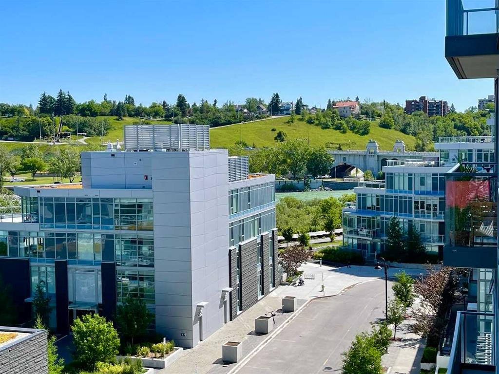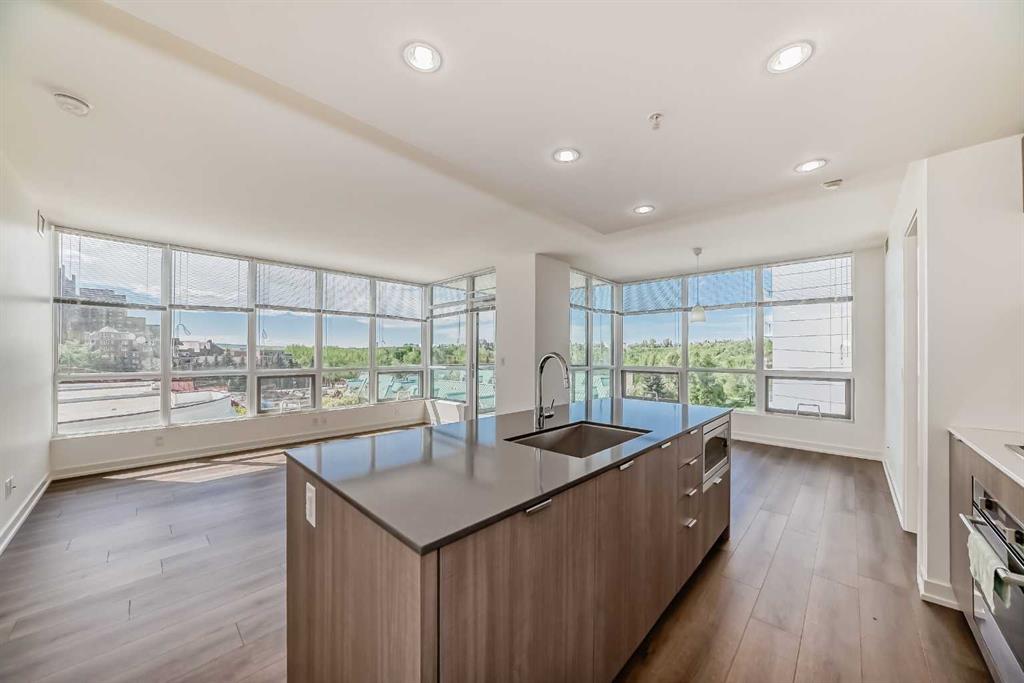 Beautiful VIEWS of the Bow River, Prince's Island Park, and downtown Calgary! This is a luxurious and cozy executive condo unit that is in pristine, move-in ready condition, and features BRAND NEW flooring in the entire unit except the bathrooms. It is located only steps away from the beautiful Prince's Island Park, in the prestigious Outlook at Waterfront complex. Conveniently located in the heart of downtown Calgary, this unit offers a short walk to downtown offices and easy access to all the entertainment, nature, and transportation options the city has to offer. This two bedroom, two bathroom, air conditioned condo unit is like in a new condition and is move-in ready. Walking into this unit, you'll be welcomed by an abundance of natural light, stunning Bow River, park, and city views, and an amazing contemporary design. The unit has a gourmet kitchen equipped with stainless steel appliances, a gas range, and lots of cabinet space for storage. There is a large centre island with beautiful quartz countertops, designer tile backsplash, and breakfast eating bar. The kitchen opens to a very spacious living room and dining area. The bright primary bedroom connects to a large 3 piece ensuite, and includes a walk-through closet with custom built-in features for storage and convenience. This unit also comes with a second bedroom with a walk-in closet and easy access to a good-sized 4 piece main bathroom. The complex itself is very secure and has an abundance of amenities you can enjoy, including concierge service, a fitness center, hot tub, sauna, movie theatre, lounge/social room, outdoor courtyard, and many more just steps from the unit. From the great views to the convenient location and practical features, there are so many reasons to make this your new home. Ideal for the professional couple, investor, or small family. Don’t miss out on this great opportunity to own this condo unit with outstanding value! Call your realtor today to schedule a private viewing!