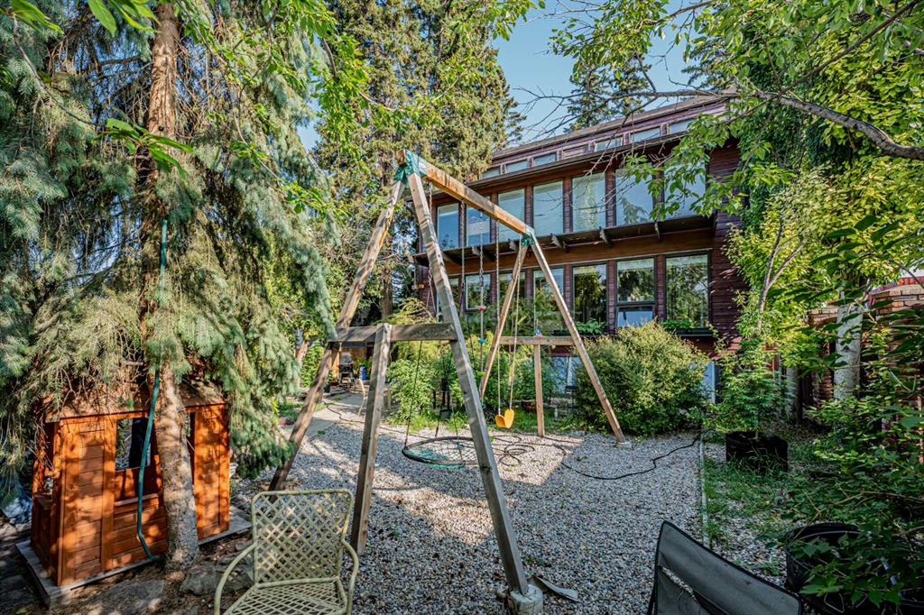 UNIQUE and absolutely stunning property for INVESTORS/ BUILDERS this Tuxedo Park home is a nature-inspired park like haven. Inner city house with RCG zoning that is already sub-divided into 2 lots. The south side of all three levels are made up of full-height windows, and a thermal envelope (passive Solar) maximizes temperature control and efficiency. ***MAIN FLOOR*** An enclosed porch opens to the main entry, so there is plenty of room for outerwear. The kitchen offers vast quartz counters, maple cabinetry, and sleek modern appliances, as well as a full pantry. A breakfast bar overlooks the dining area, which is large enough for even the biggest family meals. The solarium-style living area is inviting and peaceful, with tons of natural light, beautiful wood details, and newer high-end laminate floors. The main floor bedroom includes a built-in vanity with a sink, which would make a great coffee station for overnight guests, and there is a full bathroom on this level. ***UPSTAIRS*** The upstairs sunroom is a high-ceilinged bonus room with more gorgeous wood styling. The primary suite enjoys direct access, and also has a large anteroom with a make-up vanity and sink, great for a nursery, dressing area, or home workspace. Skylights in the vaulted ceilings bring in so much natural light. There is a third bedroom as well as an office here, and the main bathroom is bright and well-appointed. ***BASEMENT*** The basement feels like a walkout - kids will have a blast on the indoor playground. The living area is an ideal spot for your home theatre, while in the den, a gas fireplace ups the cozy factor and there is plenty of room for your home gym. The laundry area provides extra storage and a sink, plus there is a separate utility room, where a central vacuum and a second furnace have been installed. ***OUTSIDE*** Outside, a quaint front gate steps into a patio among the trees. Past the second gate, cobbled and wood pathways wind between a mix of shade and fruit trees, with perfectly defined spaces to cook, eat, play, and lounge. Rain barrels and a shed will impress the family gardener, and there is no mowing needed here. The kids will love a second play structure, and solid fences create a secret garden atmosphere. A detached single garage is heated and could be redesigned to fit a second car, plus there are two outdoor parking spaces as well. ***THE AREA*** You only have one direct neighbor, and this corner lot is edged on two sides by an alley, so there is hardly any sidewalk to shovel in winter. The corner store is just steps away, as are some local favorite eateries. Also in walking distance, there are so many parks, and the golf course is a few blocks away. There are several shops and restaurants down the road in the industrial-commercial zone, and both Edmonton Trail and Centre Street boast a great restaurant scene. Downtown is an easy commute from here, and 16th Avenue and Deerfoot Trail give you unparalleled access including a future green line LRT station.