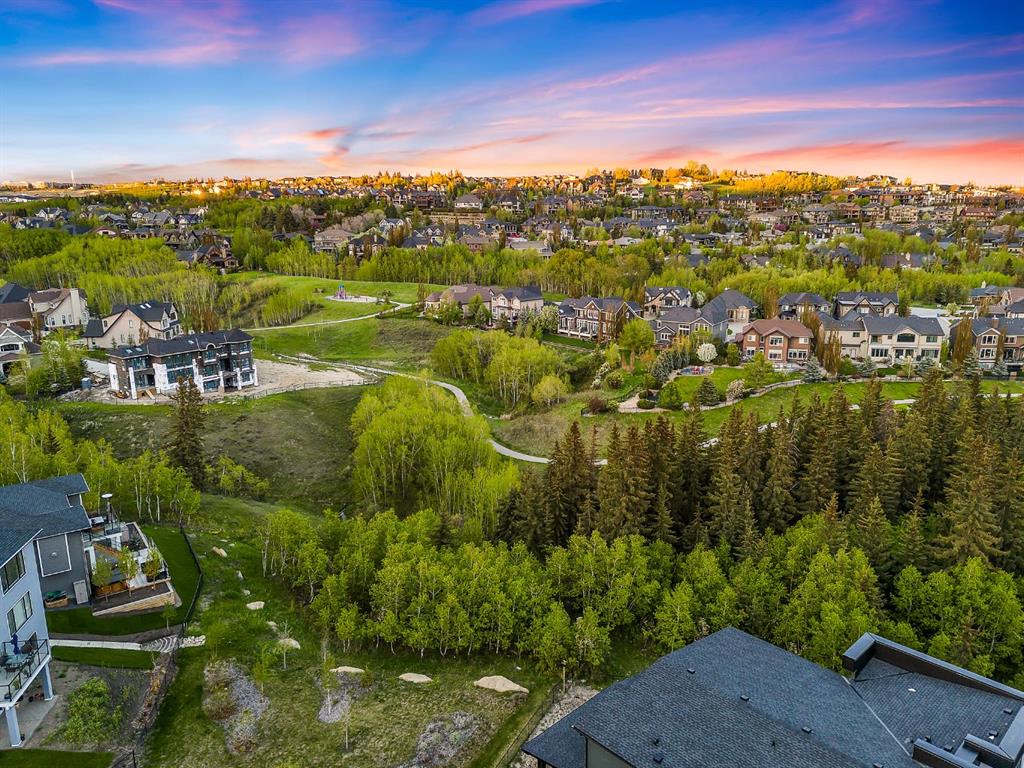 Indulge in the pinnacle of luxury living with this exquisite Truman-built walkout home, perfectly situated on a ravine in the exclusive Timberline Estates. This premier location offers unrivaled convenience, just minutes from Aspen Landing Shopping Centre, Calgary Transit and LRT, top-tier schools, scenic parks, and extensive pathways, with effortless access to the majestic mountains. With over 4,890 sqft of luxurious living space, this home offers 4 bedrooms, flexible spaces, a home office, gym, games room, and bonus room, all set in a highly coveted area. Upon entering, you'll be captivated by the bright, open-concept design. The gourmet kitchen is a chef's dream, featuring full-height custom cabinetry, a gas cooktop, wall oven, paneled refrigerator and dishwasher, Fisher Paykel built-in coffee system, under-cabinet lighting, seamless quartz countertops and backsplash, an oversized island, and expansive storage. The living room, with its soaring ceiling and floor-to-ceiling fireplace, alongside a spacious dining area, creates an ideal setting for both grand entertaining and cozy family nights, all with stunning ravine views. The main floor also offers a tranquil den with custom built-ins, a walk-through pantry with tailored shelving, a chic 2-piece bathroom, and a mudroom with storage bench seating, leading in from the attached triple garage. The upper level is designed for luxury and comfort, featuring a central bonus room with wood inlay tray ceiling and panoramic ravine views. The opulent owner's suite boasts tray ceilings, a lavish 5-piece ensuite with a freestanding soaker tub, tiled shower with built-in bench, dual vanities with a make-up desk, a separate water closet, and His and Her wardrobes leading to the upper floor laundry room with custom cabinetry and a sink. Additionally, the upper floor includes two more bedrooms, each with walk-in closets and tray ceilings. Bedroom #2 offers a private 4-piece ensuite, while Bedroom #3 enjoys a Jack and Jill bathroom. The lower-level walkout is an entertainer's haven, featuring a recreation room with a wet bar and beverage fridges, a living area that flows into an exercise room, an additional bedroom, and a 3-piece bathroom with a tiled shower. This former showhome is adorned with high-end finishes, including painted and high ceilings, intricate tray ceiling detailing with wood inlay in the primary bedroom and bonus room, wood ceiling accents in the kitchen and ensuite, and tray ceilings in bedrooms #2 and #3. A large deck overlooking the lush greenspace and a fully finished walkout basement complete this masterpiece.
