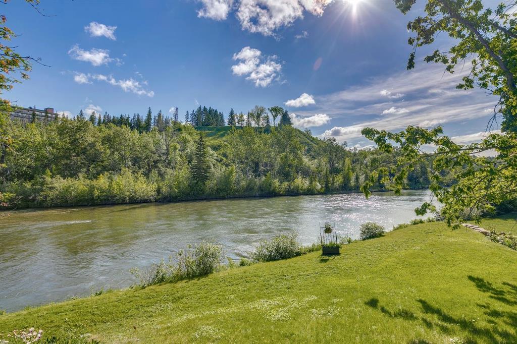 Welcome to your slice of paradise, nestled in the prestigious Elbow Park community. This stunning riverfront property is located on Elbow Park Lane, one of the area's most sought-after addresses. More than just a home; this property is a piece of Calgary's heritage. The tree-lined lane, established by the Calgary Herald in 1912, holds historical significance, originally serving as the homesteads for the newspaper's employees. In 1990, Fred Valentine, one of Canada's most esteemed architects, urban planners, and designers, crafted this stunning Cape Cod-style residence on the grounds of the Eric Harvie Estate. Owners will relish the unobstructed views across the river, benefiting from the rare privilege of riparian rights and the assurance the lands across the river will remain undeveloped, thanks to Eric Harvie's foresight. Owners will enjoy the tranquility and natural beauty of the surrounding area without interruption. Tiered patios harmonize with the property's natural landscape, surrounded by an award-winning, irrigated garden with over 45 perennial varieties. Step inside to discover soaring ceilings in the foyer, a seamless blend of hardwood and slate floors, and abundant windows offering uninterrupted views of this breathtaking property. The main living area boasts a wood-burning fireplace surrounded by Brazilian river rock and a large formal dining room offering exceptional ambiance and charm. The gourmet Denca kitchen is a chef's dream, with luxury appliances including Sub-Zero and a Bertazzoni gas range. The spacious island invites family and guests to gather and share. The upper level of this masterpiece is where you will find the primary retreat, a spacious bedroom complete with dedicated sitting area framed by panoramic windows delivering breathtaking views of the picturesque river valley. The spa-like ensuite boasts a luxurious soaker tub and large glass-enclosed shower. A generous walk-in closet is open, bright and provides ample space for your wardrobe. A second upper floor bedroom has generous closet space and views of this exquisite property. This level also includes an open bonus room with gas fireplace, a dedicated office area, and floor-to-ceiling built-in bookshelves and bench seating. Additionally, a three-piece bathroom is conveniently located here. Adjacent to the double garage is a functional laundry room featuring built-in cabinetry, sink, and custom lockers to neatly stow everything. Moving to the lower level, owners will love the abundance of storage, two more well appointed bedrooms, a full bathroom with dual vanity and a rec room. With over 4,400 fully developed square feet of living space, this property is a dream come true for those seeking elegance and serenity. Treat yourself to the best of inner-city riverfront living available. A home that is so much more than just four walls and a roof, but a once in a lifetime opportunity to own a timeless, architectural beauty interwoven with the rich history of Elbow Park.
