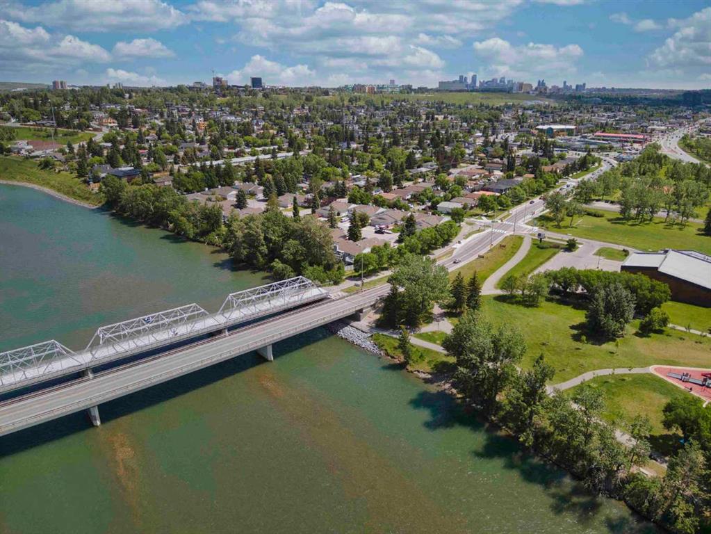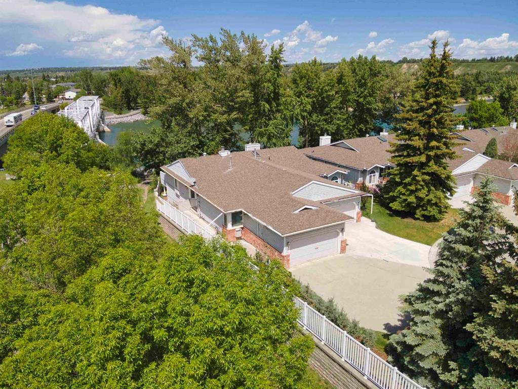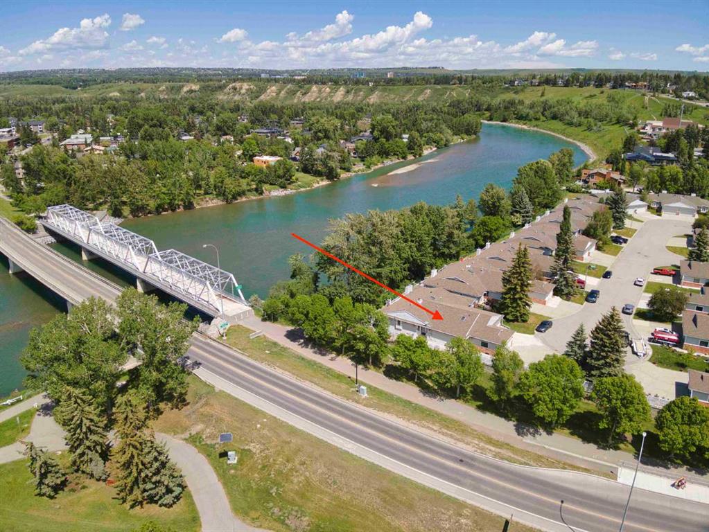 Open House Sunday 12:30 to 2:30 PM - The Villas at Bow Landing – Be sure to see this beautiful, well-cared for, fully developed walkout bungalow overlooking the scenic Bow River in west Montgomery. Situated at the end of the row this unit has no neighbor to the south and features full southern exposure with sunlight flowing through all day long in any season. The main floor features vaulted ceilings and hardwood floors throughout. A very pleasant living room comes with a wood burning two-sided, brass-trimmed fireplace, and for convenience an alcove style wet bar is tucked in beside the fireplace. The kitchen features an abundance of wonderful oak cabinetry and easy access to both the breakfast nook and dining room. A west facing deck is accessed off the breakfast nook, providing a great place to enjoy river views with sun splashed afternoons and evenings. A west facing window wall overlooks the east bank of the Bow River. The master suite has room for all your favorite bedroom furniture. The adjoining five-piece ensuite features a very effective light effusing skylight. The second main floor bedroom is also spacious and will accommodate large furniture. Never worry about warm weather as two air conditioners assure that both ends of the home are effectively cooled throughout all summer hot spells and conversely the home features two furnaces for colder periods. A main floor laundry room and access to the attached two car garage complete the main floor features. The walk-out style lower level provides access to a covered outdoor patio facing the Bow River. The level has been fully developed and features a family room with wet bar, a large guest bedroom, a summer style kitchenette and a four-piece bath. Additional development includes a fully shelved extra pantry, 2 storage rooms with built-in shelving, and a cold room with built-in shelving. This completes the fully developed lower-level. This is truly an excellent low maintenance home in a great riverwalk location. The location is just a few minutes from Foothills Hospital, the Children’s Hospital, the University of Calgary, McMahon Stadium, Market Mall, Bowness Park, WinSport, Shouldice Arena, Shouldice Stadium and athletic fields, plus a multitude of other amenities.