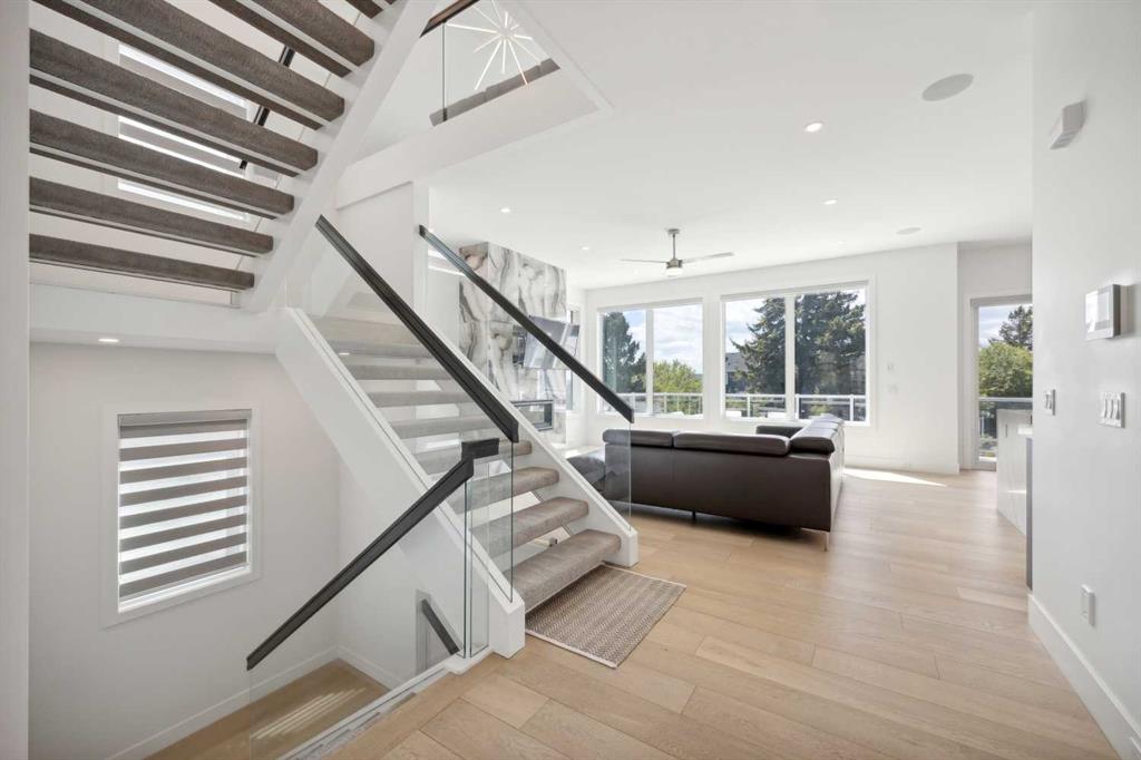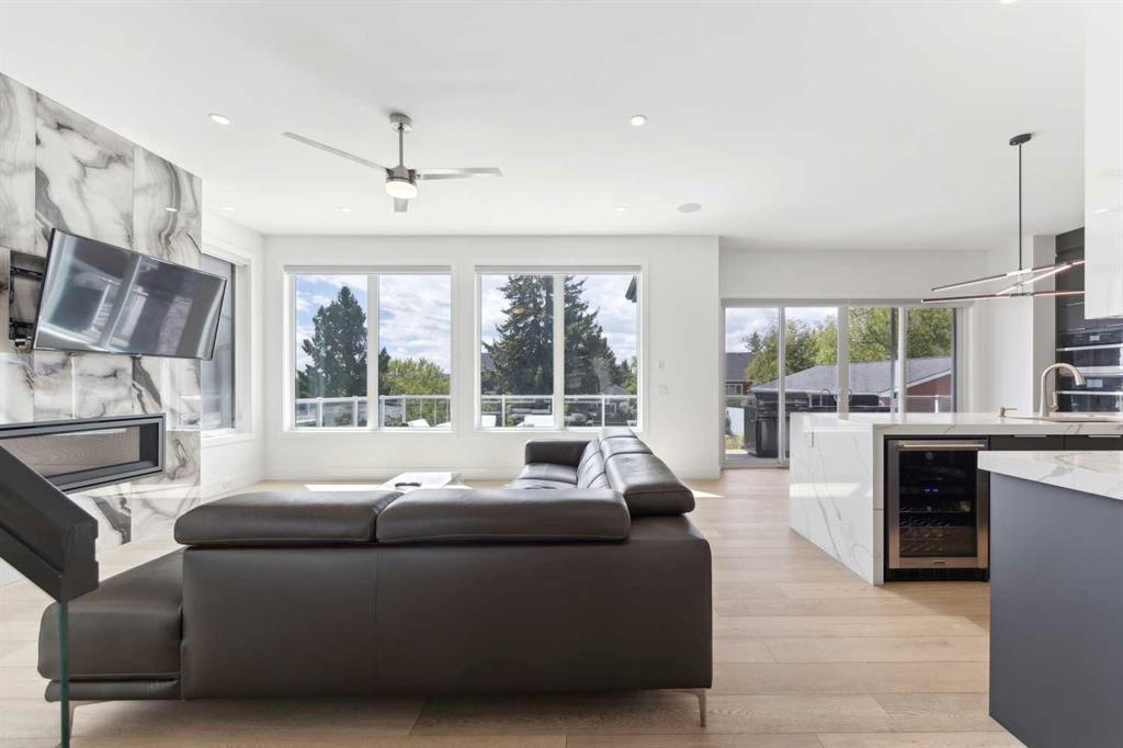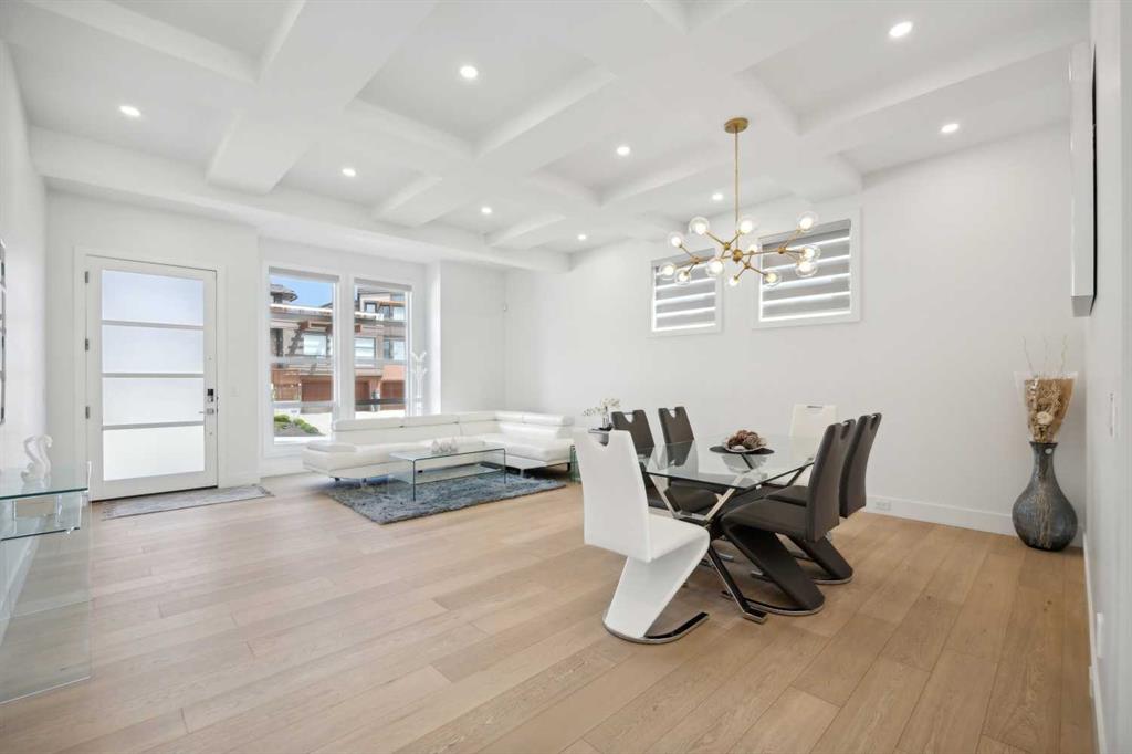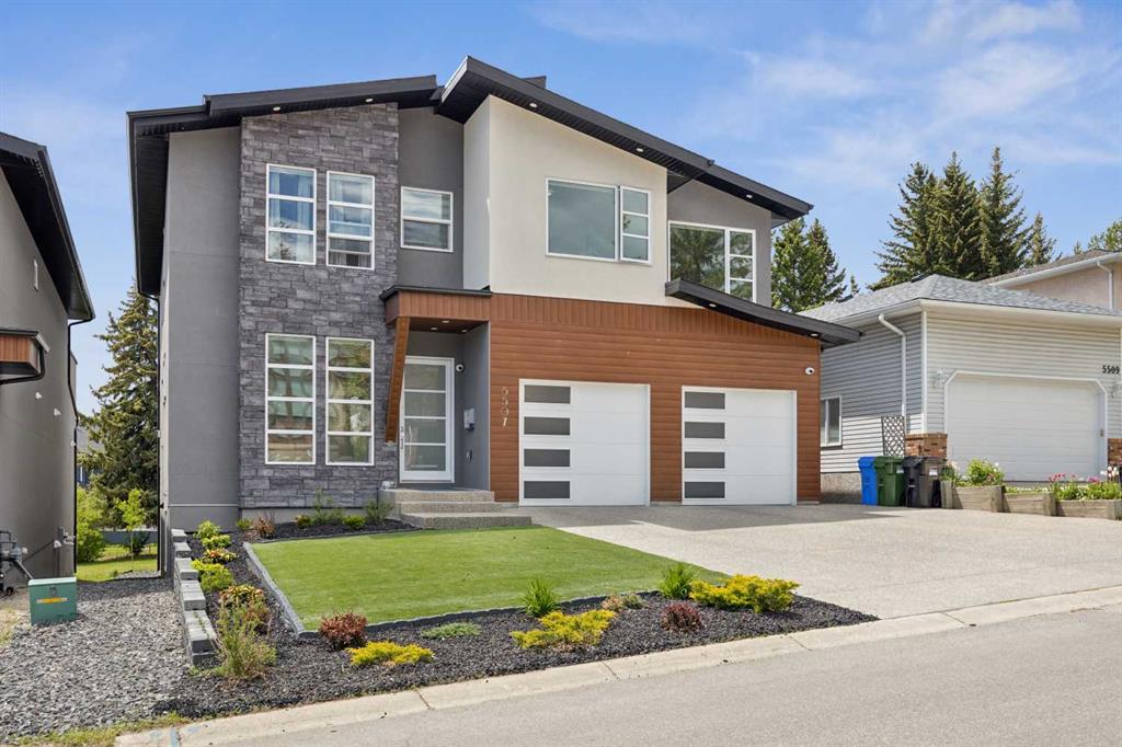 Prepare to be captivated by this exquisite home, nestled in the prestigious Dalhousie community. This stunning residence spans a total of 4,825.71 sq. ft. and boasts 5 bedrooms, 6 bathrooms (with heated tile on the upper level), and a front 3-car tandem garage. The entrance, accentuated by a coffered ceiling, sets the stage for the main floor, where 10’ ceilings and 8’ passage doors create an expansive, airy ambiance. The engineered hardwood flooring adds warmth and sophistication, while the family room features an eye-catching tiled fireplace. The open layout seamlessly connects the living and dining areas, perfect for entertaining. The kitchen is a chef's dream, featuring double mitered quartz countertops, a waterfall island, high-end built-in JennAir and Dacor stainless steel appliances, a 48-inch industrial rangetop, pot filler, motorized kitchen cabinets, and ample storage. A Butler’s kitchen offers additional cooking space. The main floor also includes a well-designed powder room and a mudroom with floor-to-ceiling built-in storage. Ascend the stunning open riser staircase to the upper level, consisting of 9’ ceilings and 8’ doors. The upper level includes a bonus room ideal for relaxation and a modern laundry room equipped with Electrolux washer/dryer, sink, countertop for ironing, and floor drain. The primary suite boasts a massive, luxurious walk-in closet and a private 5-piece ensuite bathroom featuring a double vanity, 42” x 72” jetted tub, and towel warmer. Three spacious bedrooms, each with ensuite bathrooms and walk-in closets, provide ample accommodation for family and guests. The fully developed walk-out basement (with 9’ ceilings) includes a recreation area complete with a wet bar and built-in speakers, a spacious bedroom, and a full bath with a tiled steam shower. A full-width (half covered) deck with glass railing, overlooks a ½ acre backyard that ensures privacy. The front oversized garage features epoxy flooring. Exposed aggregate driveway and low-maintenance landscaping. This home is equipped with cutting-edge features, including triple glazed windows for energy efficiency, an attractive stucco/stone exterior, and custom window coverings. Engineered hardwood flooring is found throughout the main and upper floors, while the basement features luxury vinyl plank flooring (with carpet in the bedroom and on stairs). Energy-efficient systems include 2 furnaces, 1 HRV, and 2 AC units. Additional rough-ins for in-floor heating in the basement and garage, as well as radon mitigation, ensure future-proof comfort. A security system and surround sound enhance safety and entertainment. Perfectly positioned within walking distance to Dalhousie Station Shopping Centre and the C-Train, and just minutes from Market Mall, the University of Calgary, and local schools and parks, this home offers the ultimate in convenience and luxury. Don't miss this rare opportunity to live in one of the city's most desirable communities - your dream home awaits!