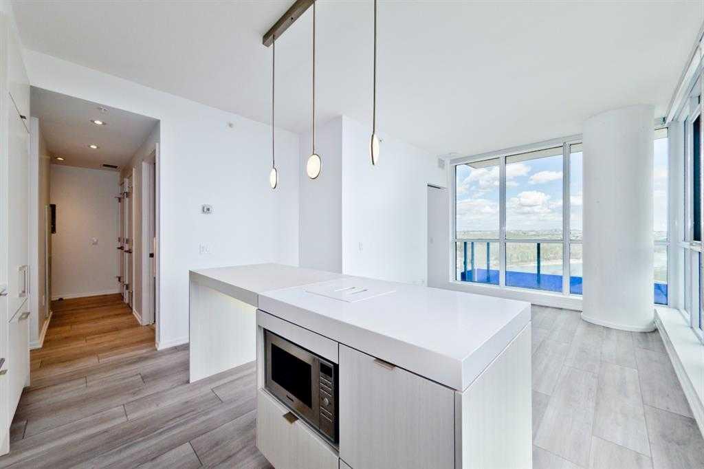 Discover upscale living at the Verve condominium! Situated on the 12th floor in Downtown East Village, Calgary! This fully furnished 2-bedroom, 2-bathroom condo was built in 2019, designed with elegance and features an open concept throughout the living room, dining room, and kitchen. It boasts premium finishes, 9' high ceilings, large windows. concierge services, security, close proximity to C-train, Superstore, kids' playground, and a modern dog park. This stunning 12th-floor condo offers the perfect blend of modern elegance and convenience with breathtaking views of both downtown Calgary's skyline and the picturesque Bow River. On the 6th floor, there is a fitness center, party room with fireplace, full kitchen & dining area, TVs & lounge area, and a huge rooftop patio with outdoor fire tables & games tables. The 25th floor offers another rooftop terrace with a gorgeous city view. Walking distance to Riverfront Pathways, Eau Claire Market, Prince's Island Park, YMCA, and many restaurants. This immediate turnkey unit is available for sale as FURNISHED! The unit comes with a titled underground parking stall level P2 - #217 and an assigned storage locker level P3 #P309-87.