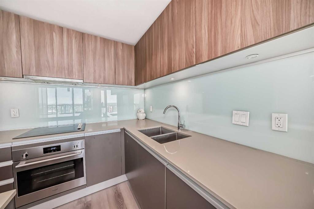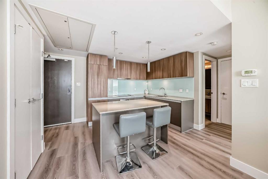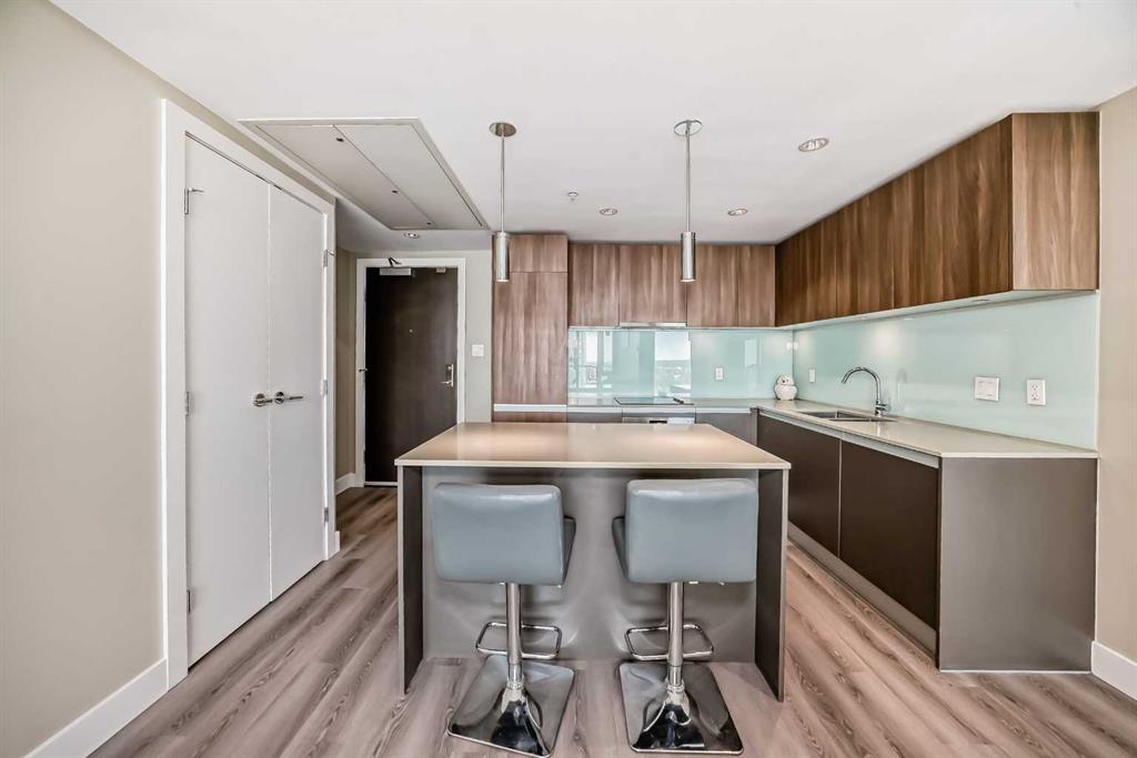 Featuring newly upgraded waterproof vinyl flooring throughout and brand-new European appliances, including a Fulgor Milano oven and Bosch washer & dryer, this condo has been thoughtfully updated, with a total renovation cost of $7,000. Welcome to your cozy urban retreat in the heart of Calgary's bustling downtown core! This beautifully designed 1 Bed, 1 Bath condo in the highly sought-after Beltline neighborhood offers the perfect blend of modern style and urban convenience. The kitchen is a home cook's dream, centered around a sleek and stylish island. Top-of-the-line built-in appliances, including a refrigerator and dishwasher seamlessly integrated into the cabinetry, a flush-mount stainless steel sink, and an electric cooktop, make this kitchen both practical and beautiful. Floor-to-ceiling windows flood the space with natural light, offering panoramic views of the iconic Calgary Tower and the majestic Bow Building. The location couldn’t be better. Just steps from the C-train station, you’ll have quick and easy access to all parts of the city. With an abundance of amenities, shops, and restaurants right at your doorstep, you’ll fully enjoy the urban lifestyle. Don’t miss the chance to make this urban oasis your new home and experience the best of downtown Calgary living!