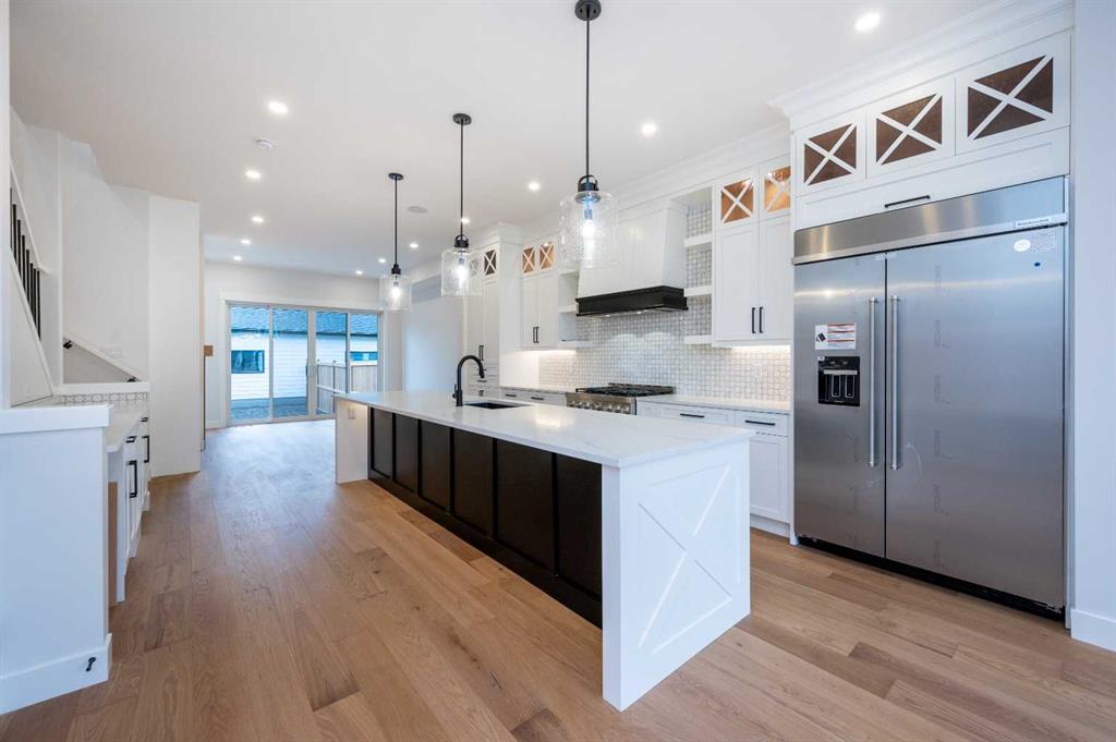 Nestled in the heart of Capitol Hill, this stunning fully developed semi-detached infill offers luxurious living with an ideal location, Say hello to this HIGHLY UPGRADED, BRAND NEW, MOVE-IN READY house with stunning modern farmhouse curb appeal and interior design. This home boasts over 2,700 square feet of total living space, 5 bedrooms, 3.5 bathrooms, and a FULLY DEVELOPED Legal basement Suite and fully finished double detached garage with 220 Volts connection for your electric Car. The bright main floor features soaring 10’ ceilings, extra-large windows, wide-plank engineered hardwood floors and trendy designer finishes throughout. A front dining room with a feature wall and a rear living room with a gas fireplace are perfect entertaining spaces in addition to the enormous, upgraded central kitchen. Boasting custom ceiling-height shaker-style cabinetry with under-cabinet lighting, an upgraded Kitchen Aid stainless steel appliance package including a gas cooktop and French door refrigerator, a huge 12' long island with stunning quartz counters, and a full set of pantry cabinets, speakers installed throughout main floor and upstairs. Upstairs, the second floor was designed to accommodate family life, with three large bedrooms, two full bathrooms, and a full walk-in laundry room with a sink. The sizeable primary suite features vaulted ceilings, oversized windows, and DUAL walk-in closets. The 5pc spa-level ensuite features a fully tiled shower with a bench and glass door, large vanity with double undermount sinks and quartz countertops, a free-standing soaker tub. Sizeable secondary bedrooms feature large windows and spacious closets. The fully-developed legal basement suite showcases 9’ ceilings, a family room with a built-in entertainment console, a full kitchen, two bedrooms, and a 4pc bathroom with a fully tiled tub/shower and separate laundry space ready for laundry. Concrete pad patio and Gas line for BBQ is done at the backyard. Front and backyard landscaping will be done by builder upon lifting water restrictions from city of Calgary. Perfectly located in one of Calgary’s most well-established inner-city neighborhoods, you are just minutes from the Downtown core. Other amenities within a short drive include North Hill Mall, Market Mall, McMahon Stadium, Foothills Hospital, Alberta Children’s Hospital, U of C, SAIT and so much more! There’s so much so close! NOTE: House besides it also available for sale, similar specifications, Opportunity for savvy investors to own both duplexes together and rent out 4 separate units for maximum return.