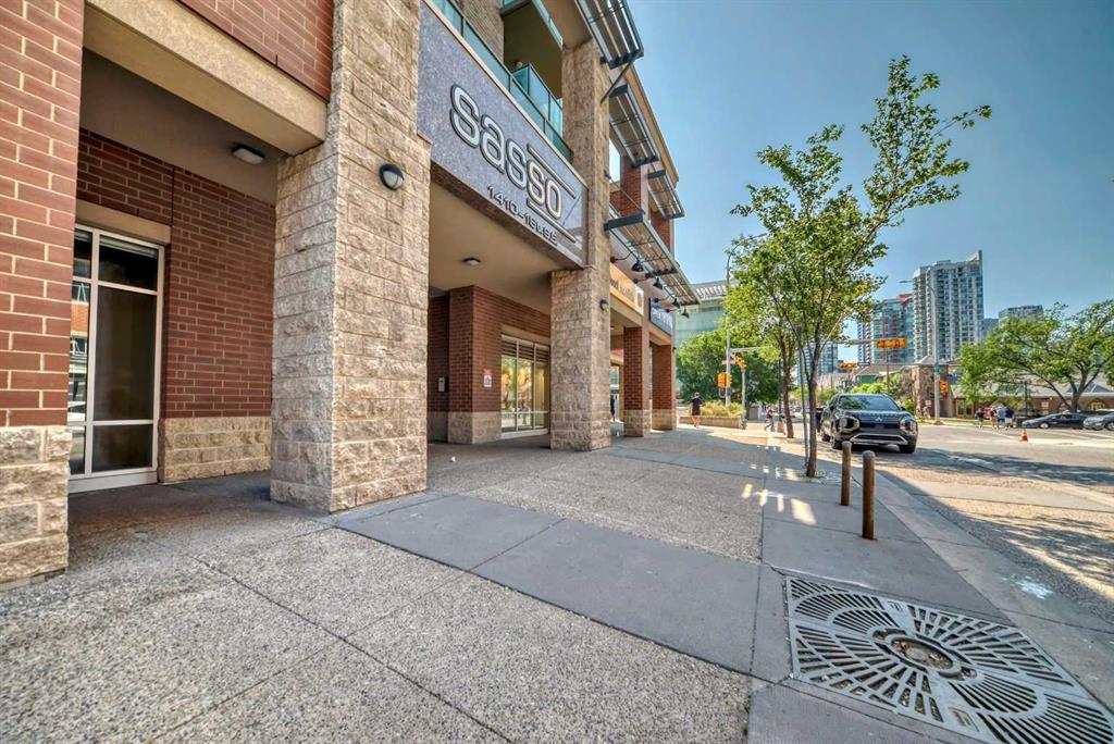 Incredible location and views! Sasso, just steps from the Stampede Grounds, C-Train, and future sports/entertainment complex. A short walk to downtown, Beltline/17th Ave, and parks like Lindsey, Humpy Hollow, and Haultain. Nearby essentials include Sunterra Market, Esso with Carwash, and Shoppers Drug Mart on the ground floor. This must-see 17th-floor 1-bed, 1-bath unit features 9 ft ceilings, floor-to-ceiling windows, and recent updates like high-end vinyl plank flooring for a fresh, modern feel. The open-concept layout connects the kitchen, living, and dining areas. The kitchen boasts an L-shaped island with double sink, breakfast bar, and newer Samsung stainless steel appliances, including a range, microwave, dual-door fridge with ice/water dispenser, and a brand-new dishwasher. The spacious living room opens to a large 13x10 ft covered deck with stunning West and East views and a natural gas hookup for year-round grilling or heating. The bedroom offers a walk-through closet leading to a four-piece bath, with a convenient cheater door. In-suite laundry with stackable LG washer/dryer adds to the ease of living. Sasso’s upscale amenities include a fully equipped fitness center, hot tub, sauna, games room with pool table, 12-seat theatre, and a second-floor outdoor promenade. With concierge service and 24-hour security, comfort and peace of mind are prioritized. Includes a titled doublewide heated underground parking spot and large storage locker. Option to purchase fully furnished for a hassle-free move-in or investment.