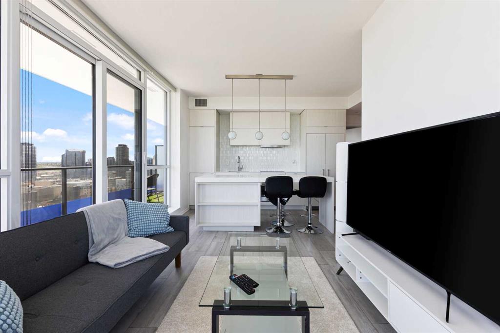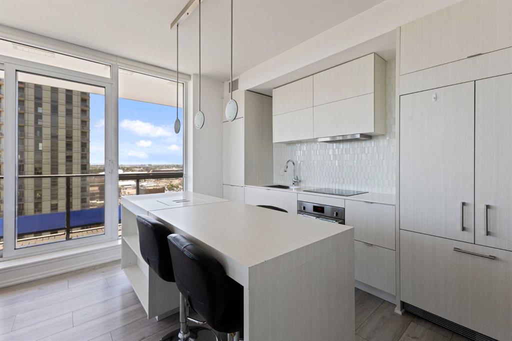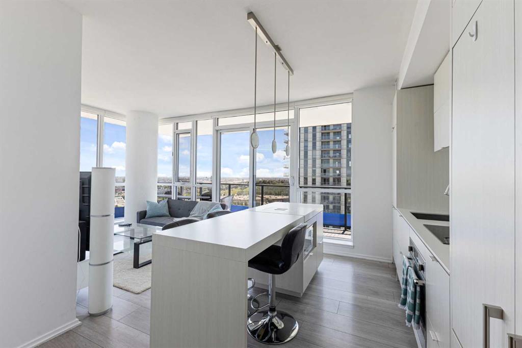 Welcome to this immaculate, contemporary 2-bedroom, 2-bathroom corner unit on the 20th floor, offering stunning views of the Bow River and Calgary Tower. The thoughtfully designed open floor plan is perfect for entertaining, featuring a sleek kitchen with integrated appliances, quartz countertops, and a spacious central island with a breakfast bar. This modern home boasts wide plank flooring, unique lighting fixtures, full-size ensuite laundry, and private balcony. Convenience is key with titled underground heated parking and secure assigned storage. The Verve offers luxurious amenities such as a concierge, spacious common areas with a cozy indoor lounge, a well-equipped exercise room, and a large patio area with a BBQ and fire pit. The 25th-floor observation deck provides spectacular downtown skyline views. Top-notch security includes full-time staff, concierge services, guest suites, and underground visitor parking. Ideally located steps from the river path system, shopping, restaurants, transit, and the impressive Central Library. Don’t miss out – take a virtual 3D tour of this incredible home today!