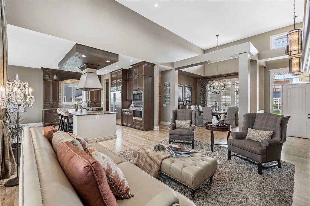***OPEN HOUSE SATURDAY OCTOBER 19 FROM 2-4 PM*** Step into over 4,500 sq. ft. of luxurious living in this former Augusta Fine Homes show home, offering meticulous craftsmanship and high-end features. Backing onto a scenic pathway, this fully finished walkout bungalow features soaring 16-foot ceilings, a dramatic stone fireplace, and expansive windows that flood the space with natural light. The gourmet kitchen is equipped with top-tier Sub-Zero, Wolf, and Asko appliances, a massive island with leather granite countertops, a gas stovetop, and custom cabinetry that stretches to the ceiling. The spacious breakfast nook overlooks the landscaped backyard, while the formal dining room with 16-foot ceilings is perfect for entertaining. Relax in the primary suite featuring a spa-like ensuite with an air-jetted tub, glass shower, and walk-in closet with direct access to the expansive deck. The fully finished walkout basement offers a large family room with a wet bar, gaming area, and three additional bedrooms—ideal for guests or family. The professionally landscaped backyard includes a hot tub, fire pit, greenhouse, and raised garden beds. Enjoy year-round comfort with central air conditioning, in-floor heating, and a covered upper deck with a retractable roof and spiral staircase leading to the patio. The oversized triple car garage is a car enthusiast's dream, featuring in-floor heating, 14-foot ceilings, and 2 car lifts, offering space for up to 5 vehicles. Additionally, there's a workshop space for your projects and hobbies. Silverado is a sought-after community with extensive parks and pathways, close proximity to Spruce Meadows, shopping, and easy access to major roads for a quick escape to the mountains. This exceptional home is a must-see for anyone seeking luxury and functionality in one of Calgary’s premier neighborhoods. Schedule your private tour today!