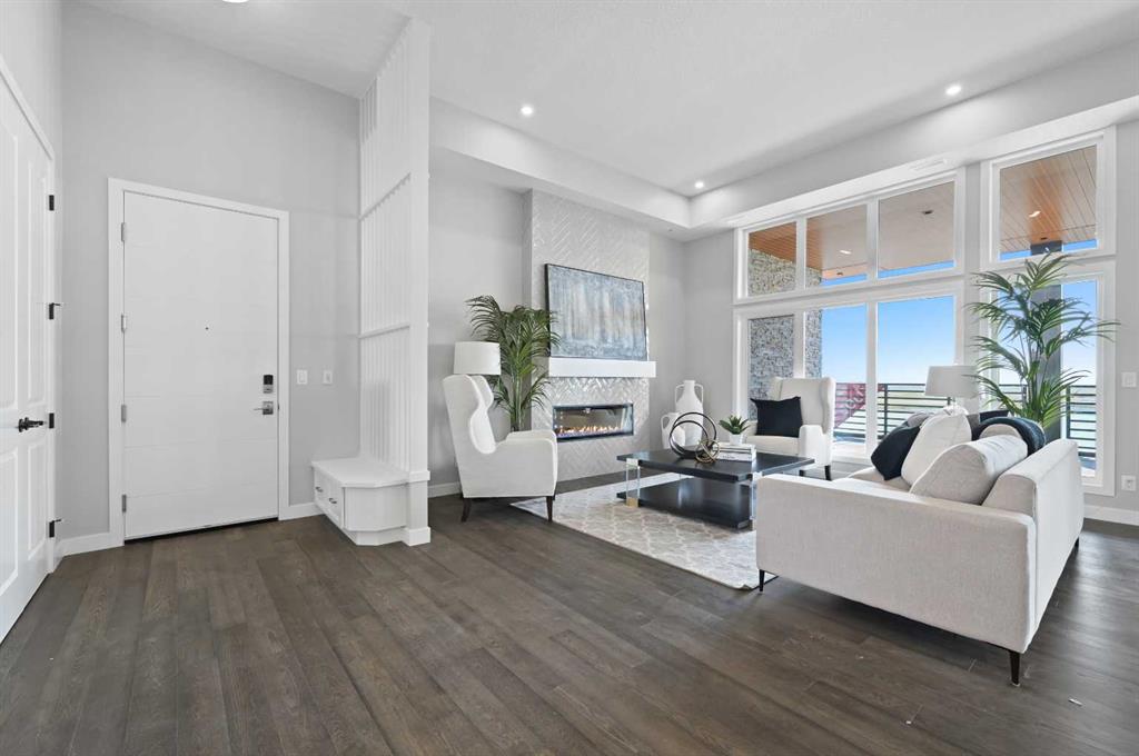 The Streams of Lake Mahogany present an elevated single-level lifestyle in our stunning Reflection Estate homes situated on Lake Side on Mahogany Lake. Selected carefully from the best-selling renowned Westman Village Community, you will discover THE SPRINGS, a home created for the most discerning buyer, offering a curated space to enjoy and appreciate the hand-selected luxury of a resort-style feeling while providing you a maintenance-free opportunity to lock and leave. Step into an expansive 2000+ builders sq ft stunning home overlooking the gorgeous Mahogany Lake featuring a thoughtfully designed open floor plan inviting an abundance of natural daylight with soaring 12-foot ceilings and oversized windows. The centralized living area, ideal for entertaining, includes a KitchenAid counter depth French door refrigerator with internal water and ice, KitchenAid Dishwasher with stainless steel interior, KitchenAid 30" Built-in wall oven and microwave combo, Broan power pack built-in cabinet hood fan, KitchenAid 36" gas cooktop and a Silhouette Emmental 24" Bev. Center for your stylish coffee bar; all nicely complimented by the an Elevated Moonlight Color Palette. All are highlighted with stunning Quartz countertops. You will enjoy two beautiful bedrooms, a generous central living area, with the Primary Suite featuring a spacious 5-piece oasis-like ensuite with dual vanities, a large soaker tub, a stand-alone shower, and a generous walk-in closet. The Primary Suite and main living area step out to a 35ftx17ft terrace with a lovely view of the stunning Lake. Yours to enjoy and soak in every single day. To complete the package, you have a sizeable office area adjacent to the spacious laundry room and powder room that opens up to another expansive 25ft terrace and a double attached heated garage with a full-width driveway. Custom additions to the home include under cabinet lighting in kitchen, A/C, folding counter in laundry room and more. Jayman's standard inclusions feature their trademark Core Performance, which includes Solar Panels, Built Green Canada Standard with an Energuide rating, UVC Ultraviolet light air purification system, high-efficiency heat pump for air conditioning, forced air fan coil hydronic heating system, active heat recovery ventilator, Navien-brand tankless hot water heater, triple pane windows and smart home technology solutions. Enjoy Calgary’s largest lake, with 21 more acres of beach area than any other community. Enjoy swimming, canoeing, kayaking, pedal boating in the summer, skating, ice fishing, and hockey in the winter with 2 private beach clubs and a combined 84 acres of lake & beachfront to experience. Retail shops & professional services at Westman Village & Mahogany’s Urban Village are just around the corner, waiting to be discovered.