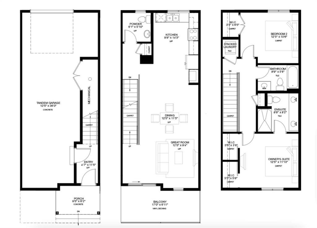Public Remarks Discover the Granville townhouse by Trico Homes, a refined rustic gem with 2 bedrooms and 2.5 baths, each bedroom boasting its own ensuite complete with double vanities. This fully upgraded home features a tandem 2-car garage, a thoughtfully designed kitchen with added pantry, upgraded cabinets, and built-in upgraded appliances. Comfort is ensured with A/C rough-in, while the full-width patios, including a 17-feet wide south-facing balcony with gasline rough-in, offer perfect outdoor living spaces. The stylish interior is adorned with black hardware and faucets, and includes a convenient vanity in the powder room and upper floor laundry. All appliances and blinds are included, and the home is backed by warranties.. Photos are representative.