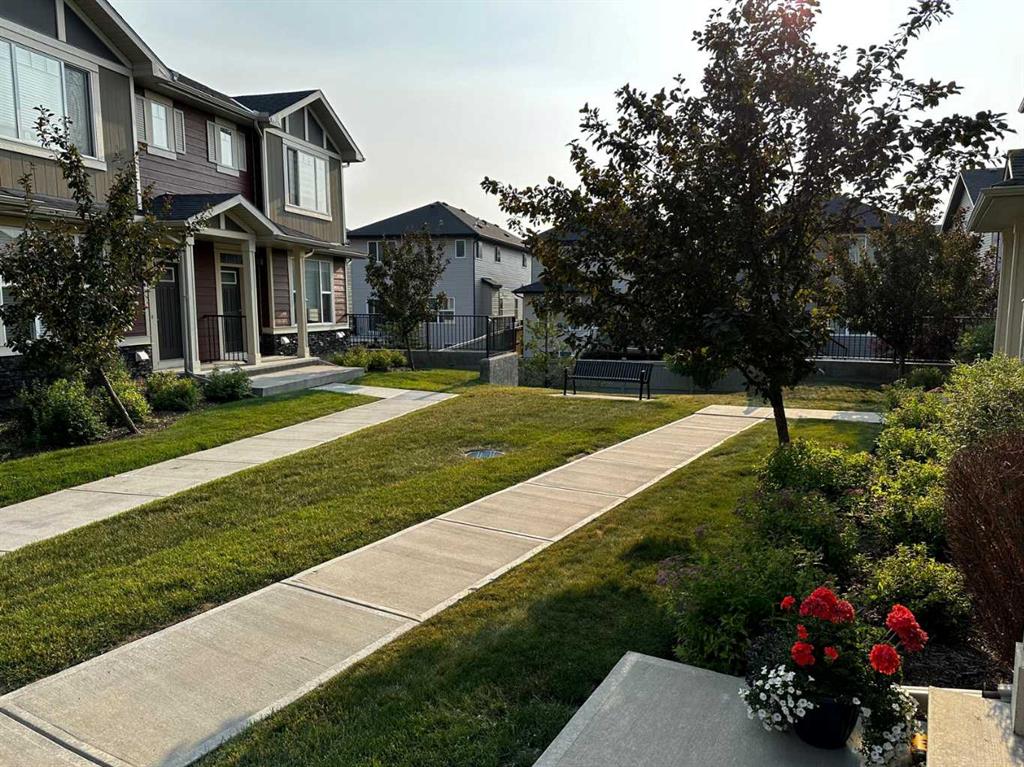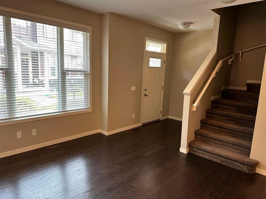 Welcome to this beautiful 3-bedroom, 2.5-bathroom townhouse in Panorama Hills. This home boasts several standout features, including low condo fees, double attached garage, and 9' ceilings on the main level. The prime location across from a park and playground enhances its appeal. The main level features tasteful engineered hardwood flooring and includes a well-appointed kitchen with quartz countertops, stainless steel appliances, and a large bar island, alongside a dining area that opens to a back balcony with a gas rough-in. The sun-drenched living room has huge windows and faces a south-facing courtyard. Upstairs, the master bedroom offers a 3-piece ensuite and a walk-in closet with window, with 2 more good-sized bedrooms and a 4-piece bathroom completing the upper level. The basement features a laundry room, a storage room, and access to the 19'8" x 19'2" double attached garage, which is large enough to park two full-size vehicles. Conveniently close to schools, shopping centers, public transit, Stoney Trail, and the Vivo Centre, which offers a wide range of recreational activities and facilities. Don’t miss the incredible value this home offers! Book your showing today for this huge price reduction town home!
