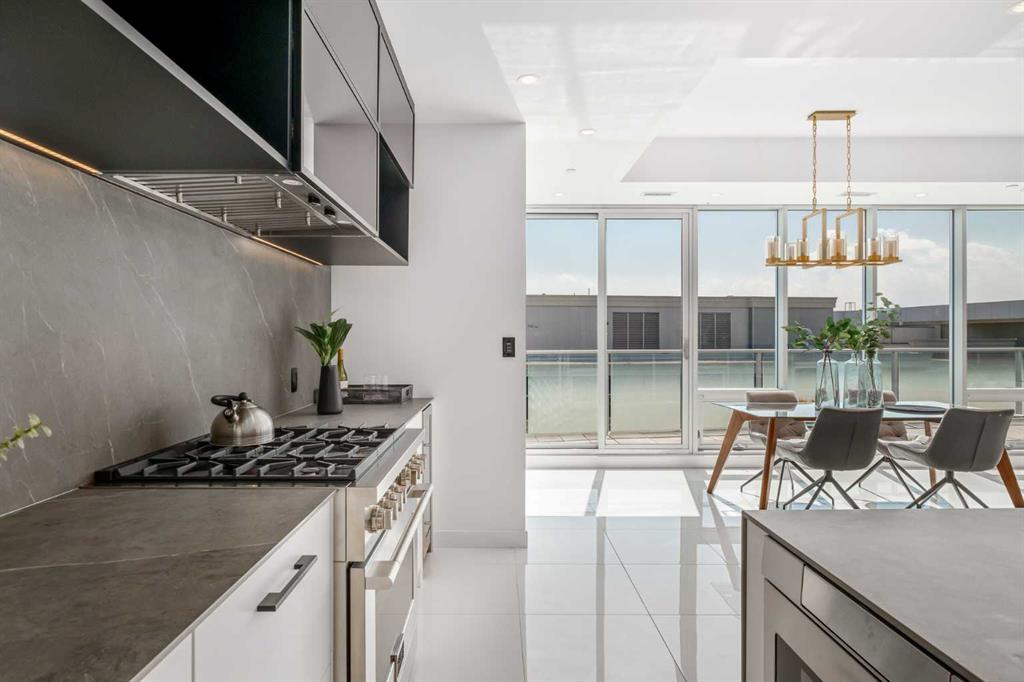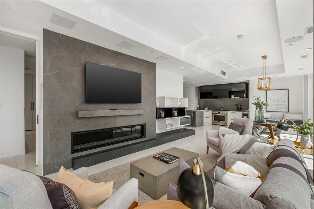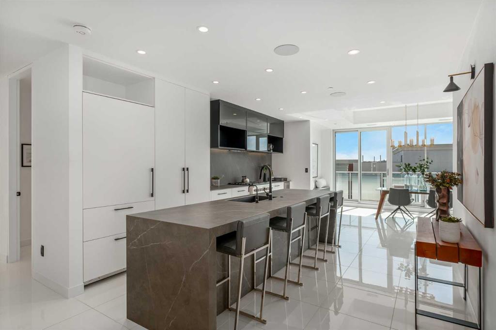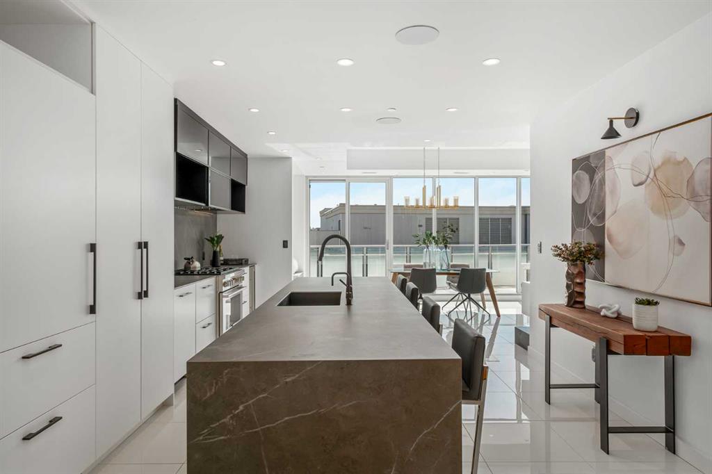 Nestled within the heart of Inglewood, where the Bow River and Elbow River meet, one of Calgary's most sought-after neighbourhoods, is this exquisite 3 bedroom, 2.5 bathroom penthouse at AVLI on Atlantic. Crafted by Sturgess Architecture and adorned with interiors by Jerilynn Wright and Associates, this penthouse offers a grand living experience. The building presents a guest suite, granting easy access to shared garden terraces and outdoor spaces alongside ample heated underground visitor parking. With over 1,600 square feet of luxurious living space, this penthouse redefines upscale living. Upon entry, 24” x 24” bright white tile flooring stretches throughout the open-concept layout and seamlessly unites the kitchen, dining area and the living room, enhanced by floor-to-ceiling windows and Light Tunnels for even more natural light. The kitchen exudes style and functionality, featuring a central island with large-format porcelain counters, bar seating, and a high-end appliance package including an undercounter beverage fridge. Plenty built-in closets and cabinets provide all the storage you need to neatly store all your goods – and then some! Adjacent to the kitchen, the formal dining room is bathing in natural light, and boasts a charming built-in bench with storage, perfect for peaceful reading or quiet contemplation. This wall also can double as a wine-wall to display your very best vintages. Slide open one of many glass doors to the massive South-facing wrap around balcony, boasting beautiful downtown skyline views and outdoor amenities such as outdoor speakers and wall panelling provides a tasteful, finished look with minimalistic concrete exposure. The bright, sunny second and third bedrooms feature floor-to-ceiling windows, ceiling speakers, and well-sized closets with built-in organizers. These two rooms share a full 3-piece bathroom with a fully tiled, walk-in shower enclosed by a 10 mm glass door, and a smart sensor toilet. The primary bedroom, marked by a discreet pocket door, incorporates a 2-way gas fireplace with a wall-mounted porcelain tile mantle, tons of closet space with a built-in dresser, and access to the balcony. The ensuite bathroom, a luxurious retreat, offers a 10mm glass enclosed stand-up steam shower, heated freestanding heated soaker tub, dual vanities, floating mirrors, and a smart sensor toilet. An in-suite laundry with high-end side-by-side Samsung washer/dryer completes this stunning penthouse. Two titled underground parking stalls and an assigned storage locker are included with this property. Located in the idyllic, inner-city community of Inglewood, Avli on Atlantic is mere steps from Lina's Italian Market, renowned dining at The Nash, the inspiring art exhibitions at Esker Foundation, and you are only a block from the Bow River pathway system, making this condo convenient and highly walkable. **2nd Penthouse also available!**