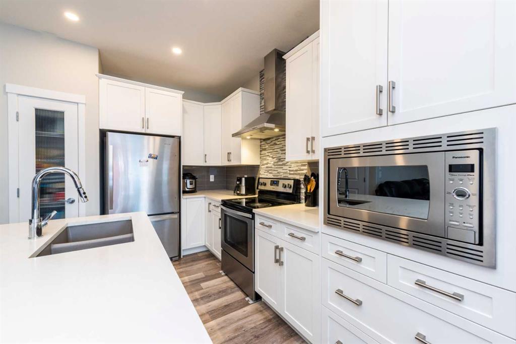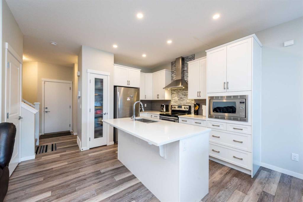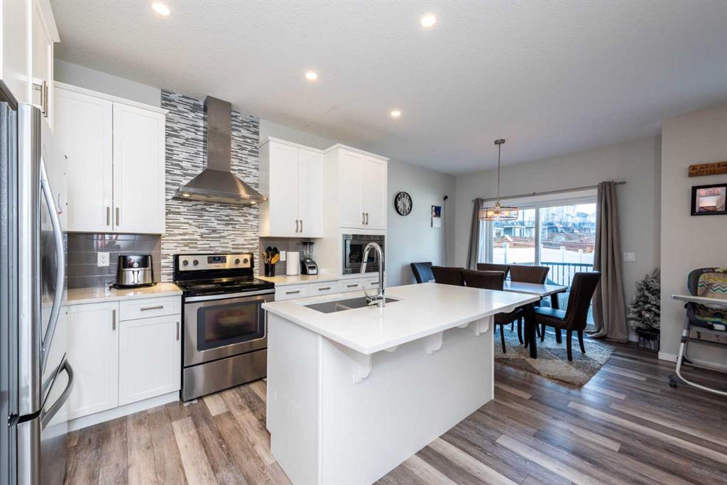 Welcome to this stunning two-story home in a strategic and family-friendly neighbourhood of Nolan Hill in Calgary, NW, close to schools, shopping malls, and Stoney Trail. This spacious 1400-square-foot home features high-end finishes throughout, making it the perfect blend of luxury and comfort. The main floor offers an open-concept layout with a bright, inviting living room featuring a gas fireplace. The modern, elegant kitchen has stainless steel appliances, including a stove, fridge, dishwasher, and built-in microwave, complemented by sleek quartz counters. Adding to the charm are the rounded corners, 9' knock-down ceiling, wide plank vinyl flooring, upgraded tile, and Hunter Douglas Faux wood blinds, enhancing the aesthetic appeal. The home boasts three spacious bedrooms upstairs, including a primary suite with a walk-in closet and an ensuite bathroom. Two full baths and a convenient upper-floor laundry with a Whirlpool top-load washer and dryer offer added functionality. Cozy carpet and wrought iron railings add warmth and sophistication, while roughed-in TV wall mounts in the great room and master bedroom provide modern conveniences. The double-attached garage offers comfort to your vehicles during inclement weather seasons and offers ample storage space and easy access to the home. The exterior of the home is equally impressive. It features a sunny, private backyard oasis with a beautiful lawn, perfect for outdoor activities and relaxation. A BBQ gas line connection has been installed on the rear deck, making it ideal for entertaining. The backyard has been recently fenced, ensuring the outdoor space is as meticulously maintained as the interior. The basement remains undeveloped, providing potential for future customization to suit your needs. This home is ideal for families seeking stylish and functional living space in a desirable neighbourhood. The combination of luxury finishes, practical amenities, and a prime location make it a unique opportunity. Don’t miss the chance to make this house your new home, where comfort, style, and convenience come together seamlessly.
