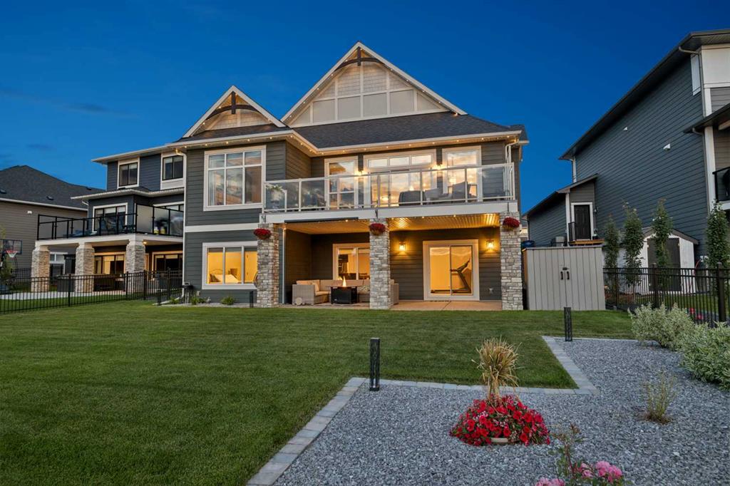 Experience luxury living in the exclusive enclave of Bayside Estates. This exceptional walkout bungalow is located on a massive 992-square-meter lot with direct waterfront access. With no expense spared and meticulous attention to detail, this home exudes pride of ownership from the moment you step onto the property. From Gemstone lights front and back, to the smart irrigation system, to the stunning landscaping, you'll appreciate that nothing is left to do but enjoy your peaceful surroundings. This McKee-built air-conditioned home has been modified and expanded to measure nearly 1900 square feet above grade. Walking through the front door, you'll be inspired by the sweeping views of the canal that span the width of the home. 10-foot high ceilings, 8-foot doors, a gorgeous open plan, and an impeccable design elevate this home. The kitchen has a stunning central island with rich quartz countertops, an induction stove, a built-in oven & microwave, and a professional-grade fridge and freezer. The butler pantry is a fabulous touch and the walk-in pantry is amply sized for all your food storage needs. The living space on this main level lends well to entertaining. You will love the upgraded vinyl decking off the living room while enjoying morning coffees or watching the kayakers on warm summer nights. With west views to the back, the setting sun will never look so good. The primary suite offers unobstructed views of the canal with an opulent 5 piece ensuite that features heated floors, a deep soaker tub, a designated makeup station, and an oversized shower. The walk-in closet has custom storage options and leads conveniently to the laundry room. A main floor office/bedroom and a bold powder room complete the main level. The fully developed basement is meant for game days and fun. The recreation space includes a fantastic wet bar with heated floors and a fridge. This is where friends will gather for NFL Sundays and poker matches. Additionally, there are two bedrooms, a 4 piece bathroom with heated floors, and nearly 200 square feet of unfinished space for storage and organization. The fully fenced backyard beckons with a large exposed aggregate patio, rough-in for a hot tub, green space for the kids, symmetrical flower beds, and a retaining wall with steps that lead to the water. This home is truly exceptional and must be seen to be truly appreciated. Bayside Estates is a phenomenal community with extensive walking paths, playgrounds, and schools. Check out the link to the iGuide tour for an immersive virtual experience.