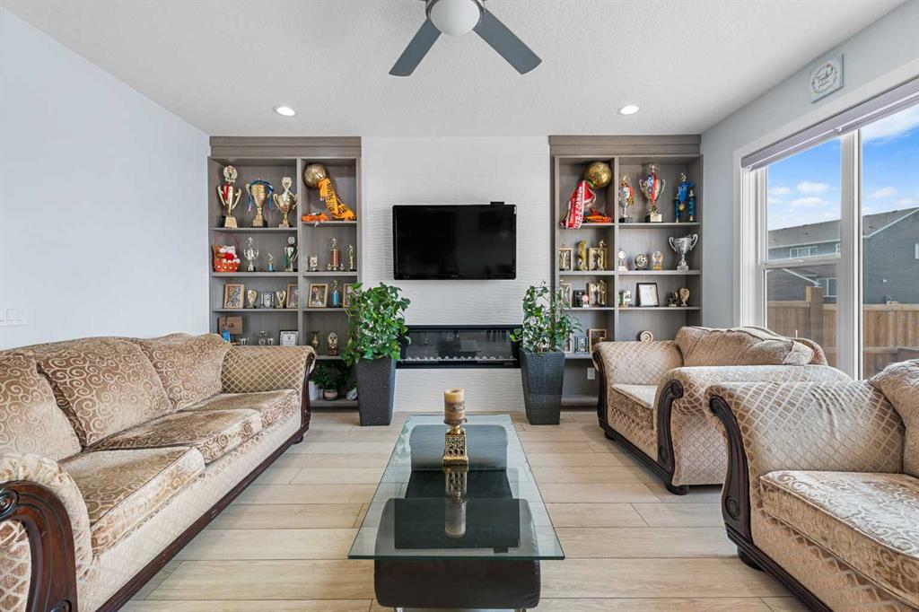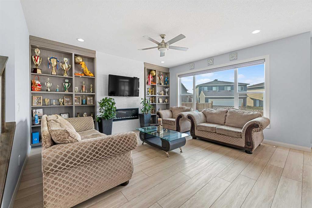 **2 Main Level Bedrooms & 3pc Bath** Spice Kitchen with Gas Stove & Pantry | Chef's Kitchen with Gas Cooktop & Built-in Stainless Steel Appliances | 3 Upper Level Primary Bedrooms with Walk-in Closets & Ensuite Bathrooms | 4th Upper Level Bedroom with Walk-in Closet | Upper Level Laundry Room with Sink | Upper Level Family Room | Central Air | Gas Line for BBQ | Expansive Living Space | Ample Natural Lighting | Open Floor Plan | High Ceilings | No Maintenance Landscaping | Double Attached Garage | Alley Access. Welcome to this stunning 2-storey family home with 6 beds, 5.5 baths and plethora of living space. This main level features a stunning open floor plan between the kitchen, dining and living spaces. The chef's kitchen is outfitted with quartz countertops, full height cabinets, a gas cooktop, built-in stainless steel appliances and a large centre island with barstool seating. Off the kitchen is a spacious spice kitchen with a gas stove and open shelving pantry storage for dry goods. The dining room is paired with sliding glass doors to the back patio with a gas line BBQ for easy indoor/outdoor dining! The living room is centred with a stylish electric fireplace and framed with built-in storage on either side. The 2 bedrooms on the main level are a bonus! The primary has a cheater door to the 3pc bath with a walk-in shower. The main level is complete with a 2pc bath & a foyer with closet storage for coats and boots. Upstairs holds 3 primary bedrooms & 1 additional bedroom with plus carpet, 4 bathrooms, a sizeable family room and laundry room. The 1st primary bed has a 5pc ensuite bath with a deep soaking tub, double vanity, walk-in shower & private washing closet. The deep walk-in closet is a treat! The 2nd primary bed has a 3pc ensuite & walk-in closet. The 3rd primary bed has a 4pc ensuite bath & walk-in closet. The final bedroom on this upper level is spacious and has a walk-in closet. The upper level family room is a great addition to the living space for family time in the evenings. The laundry room is fit with a sink and linen closet storage. Downstairs has a separate side entrance! The basement is partially finished with a wet bar with cabinets above and below. As the plumbing is already outfitted in the basement, the possibilities are endless for a space to fit your family's needs! The large backyard requires no maintenance as its fully paved! This is a great space for an outdoor dining set! The front attached garage & driveway allows for 4 vehicles to be parked at any time plus street parking is readily available too. This home is steps away from the future CBE Elementary and sports field in the 2025-2028 Calgary Board of Education Planning. Easy transportation access to major highways including Stoney Trail, Deerfoot Trail and its close to the Calgary International Airport for when family and guests visit. Hurry and book your showing at this incredible home today!