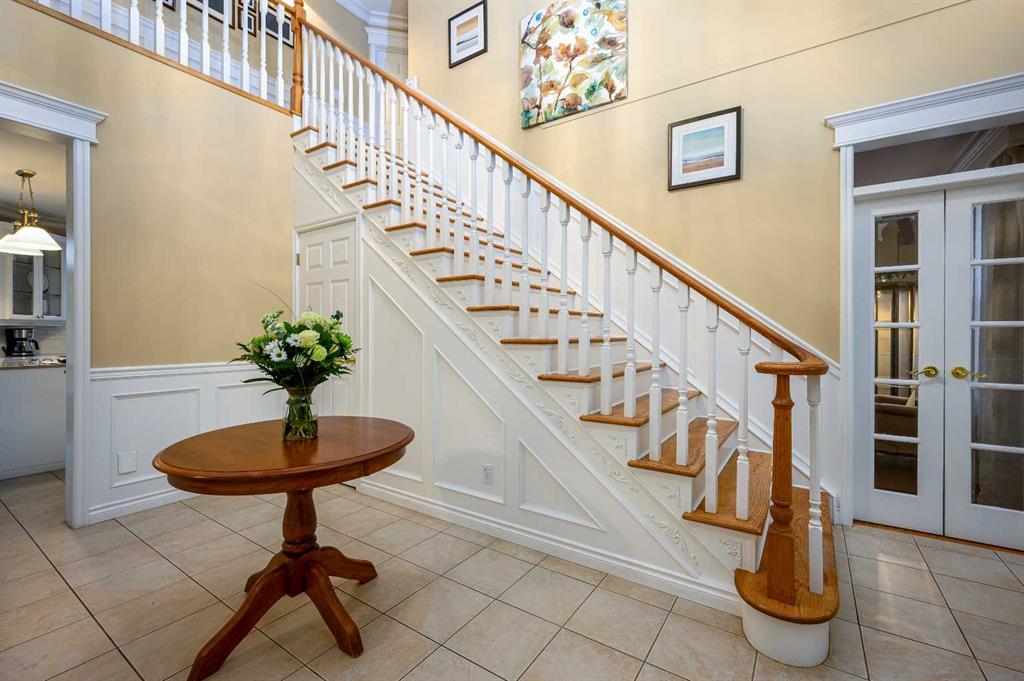 Opportunity knocks! Located in the highly desirable, family oriented community of Valley Ridge this 4 bedroom, 3 bath family friendly home is situated on a quiet street and private lot that backs onto walking paths to the Bow River and green space! This home features a grand entrance with a beautifully crafted wooden staircase, a large and inviting family room with gas fireplace. Cozy up to the eating nook at the newly updated kitchen or entertain guests in the elegant dining room. Upstairs you will find the large primary bedroom plus 3 piece ensuite bath and three additional generous bedrooms plus a 4 piece main bath. The basement features storage space, laundry, huge recreational / games space, flex space plus a 3 piece bath. This home is really well built and aside from the new kitchen quartz countertop, is in original condition. Basement is roughed in for in-slab heat. Contact your favourite real estate agent today for you own private viewing.