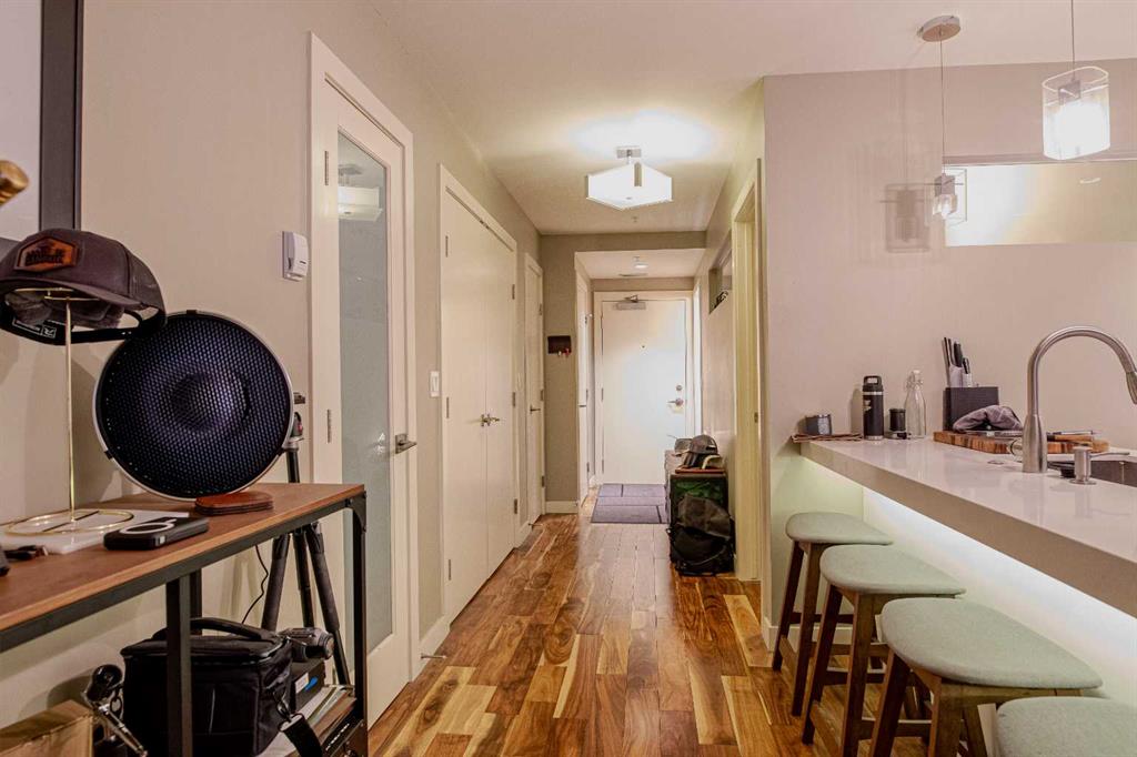 Welcome to this 1 bedroom + den unit in The Lucida, one of the modern low-rise buildings in the vibrant community of Beltline. Perfect for a first time home buyer or an investor with a very good renter in place who is willing to stay. This building is a very short walk to the shopping and amenities by 17th Avenue. If you live or frequent this area, you'd know and appreciate the convenience of the nearby shopping, cafes, restaurants, groceries, Best Buy, city bus, high school (Western High School), etc. If you have a car, there is plenty of permit parking (have a look for yourself). At 675 sq ft, it is an ample and comfortable space with a den for an office space, perfect for those working at home. The stairwell is next to the unit for easy access. The visitor's parking is behind the building. Enjoy the open layout, a beautiful kitchen with a large island, stone counters and gas stove, a balcony with a gas bbq line to relax and entertain. There is plenty of closet space for storage. The laundry is in the unit adding to the convenience. If you need the extra storage, the cage-type storage is in the underground parking. This unit has 2 full bathrooms - a nice surprise to the already simple and beautifully laid out living space. A must see to appreciate.