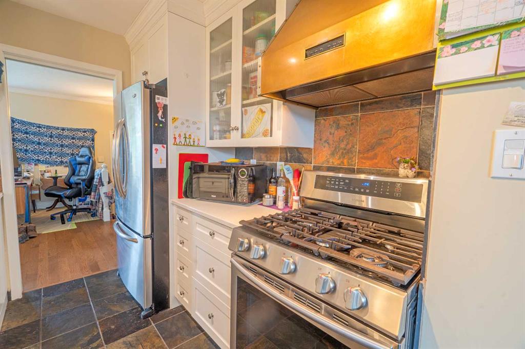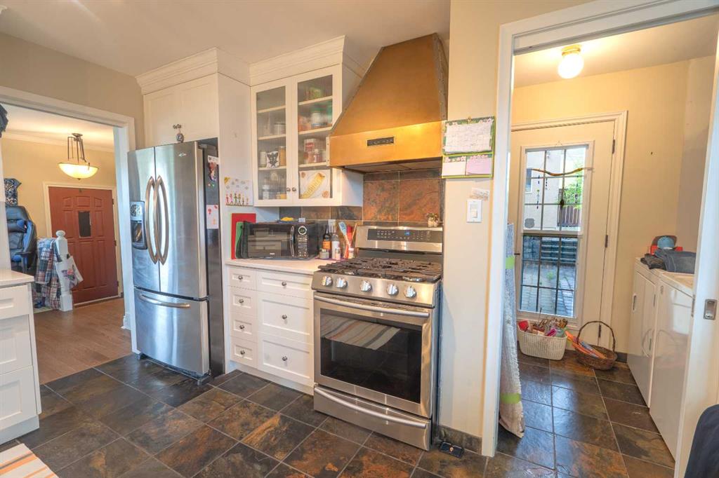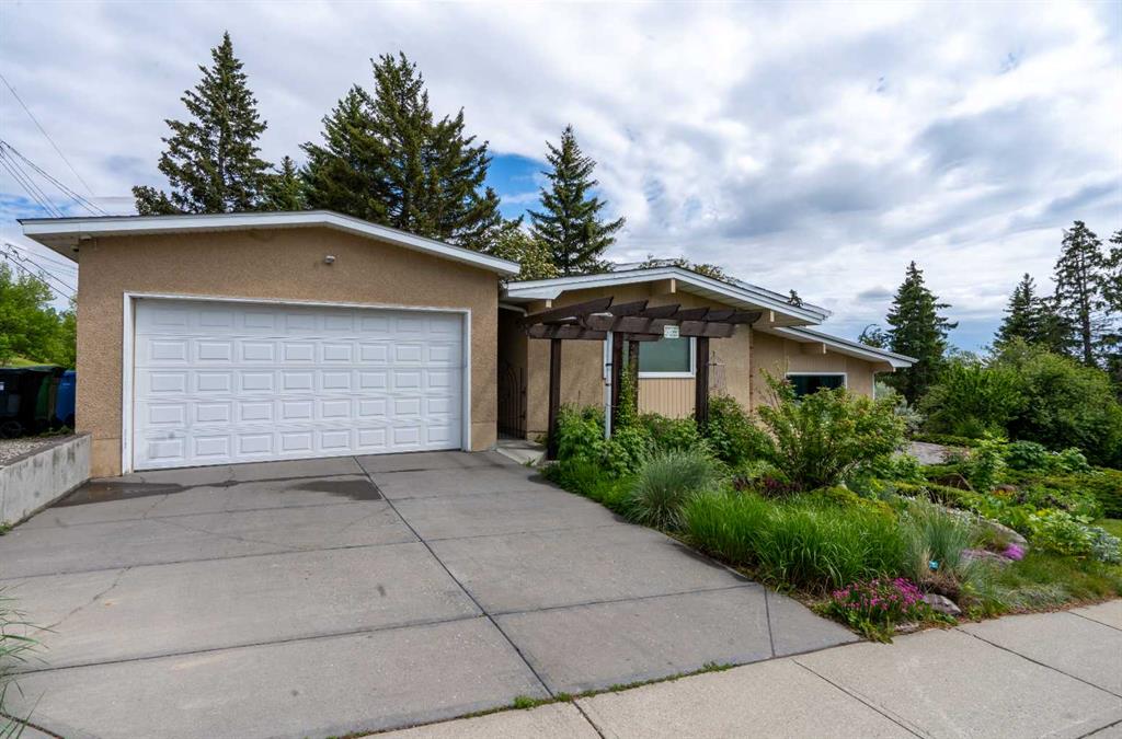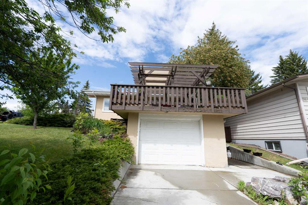 Welcome to this exceptional four-level split home, nestled on a large lot in the sought after community of Charleswood. Situated at the end of a tree-lined street, this property offers a serene green belt backdrop and captivating city views. The exterior features a charming pergola-covered patio above the second garage, perfect for enjoying the stunning cityscape. Inside, the main level features an updated kitchen, highlighted by a custom solid copper range hood and quartz countertops. The open-concept living and dining areas are finished with oak flooring. The upper level is home to two spacious bedrooms, including a master suite with a walk-in closet and convenient ensuite bathroom. The third level boasts a generous recreation room complete with a full-sized wet bar, ideal for entertaining. The fourth level is a versatile space with its own separate entrance, a large recreation room, a three-piece bathroom and bar. Additional highlights include a substantial 32' x 18'8" garage at the rear and a single attached garage at the front. The property also offers convenient access to a walking path right out the back gate and is within walking distance to schools, the University of Calgary, and the Calgary Winter Club. Book your showing today!