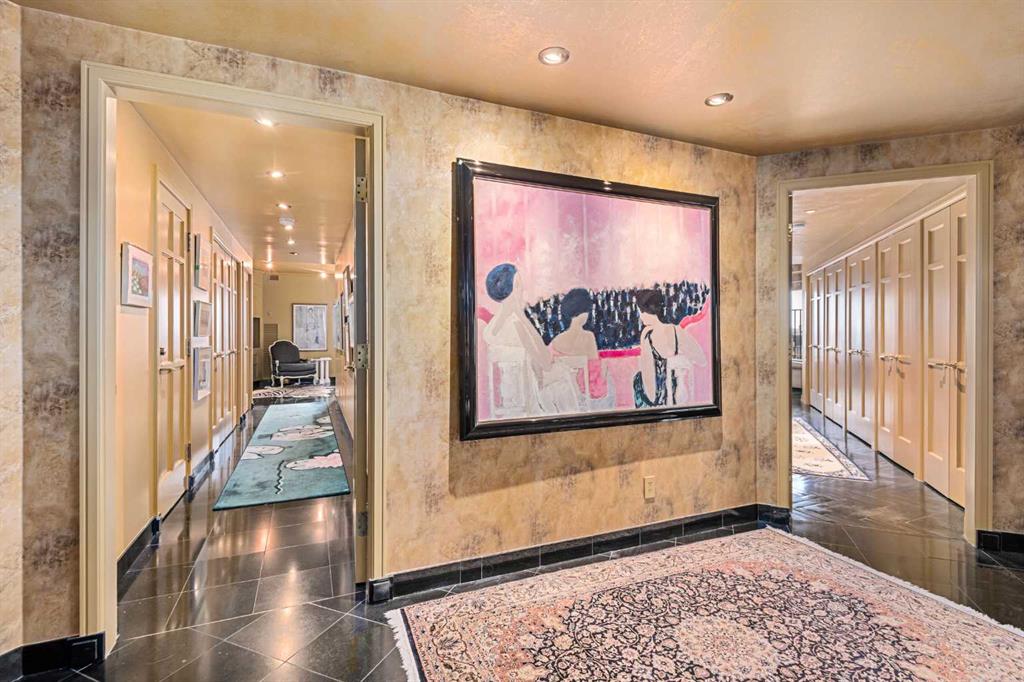 Welcome to an unparalleled living experience in Calgary’s most prestigious address - the Estate Premiere Condominium. This luxurious 2-bedroom, 3-bathroom residence spans an impressive 3,145 sq ft and epitomizes Hollywood glamour with modern sophistication. Step into a world of elegance where Coco Cran design elements merge seamlessly with timeless luxury. The expansive living spaces are adorned with marble and hardwood floors, exuding an air of opulence. The spacious gourmet kitchen is a culinary artist’s dream, featuring built-in marble cabinets, granite countertops, sub zero fridge, and maple cabinetry. A formal dining room boasts beveled glass French doors and additional built-in marble cabinets, ideal for hosting sophisticated dinners. Every detail has been meticulously crafted, from the gold-plated fixtures to the full-wall west-facing windows that offer breathtaking mountain views. The desirable floor plan includes a wet bar off the main area and built-in china cabinets, enhancing the condominium's grandeur. This residence provides exclusive access to Ranchman’s Club, Alberta’s only Platinum-ranked private social and business club, offering an unmatched lifestyle of convenience and prestige. Proximity to the city’s business hub ensures you're always connected to the pulse of Calgary’s vibrant downtown. Drenched in history, this beautiful building is directly across from the Lougheed House, a fantastic venue to take visitors who are interested in where Calgary started. Enjoy the luxury of a full-time concierge who caters to your every need. Indulge in the indoor pool and sauna, stay fit in the exercise room, and relish the convenience of all utilities included in the condo fees. Looking for some air, what about the massive outdoor patio where you can BBQ, visit with friends and family. 2 heated underground parking stalls are available for your convenience and ease. Appliances are sold as is/where is. Experience the pinnacle of luxury living in The Estate. Calgary’s Premiere Condominium, where Hollywood glamour meets unparalleled comfort and convenience. This extraordinary residence is more than just a home; it’s a statement of prestige and a testament to the finer things in life.