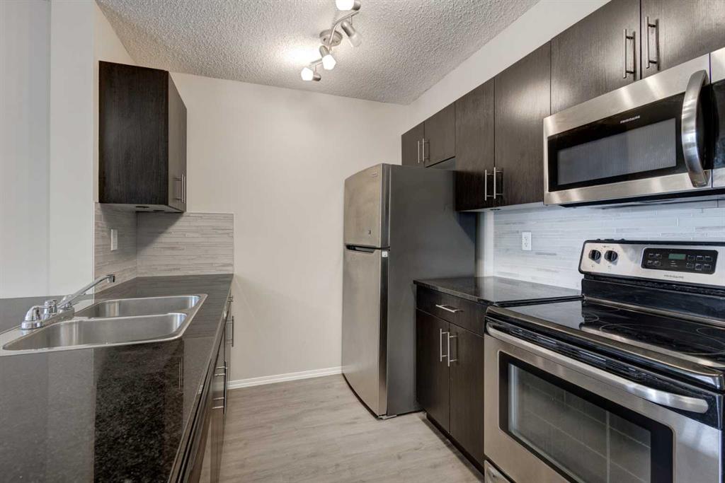 Welcome to Legacy Gate! This beautiful 2 bedroom condo with LARGE DEN offers a modern kitchen with granite countertops, updated stainless steel appliances and ample storage space. Opening to your large and bright living room, ideal for relaxing or entertaining with family and friends. Your spacious west facing patio is a great space for BBQing and enjoying the sunshine. updated LVP throughout the kithen, living room and bathrooms. In addition, you will enjoy 2 sizable bedrooms. The primary suite offers a walk-through gallery closet on your way to your 4pc ensuite. The den is perfect for an office, storage or gym. Laundry is conveniently located in the main 4pc bathroom. The community of Legacy offers a wide variety of shops, restaurants, retail stores and medical needs. Many parks, trails, playgrounds and greenspaces are within walking distance. Conveniently located in close proximity to all major roads Stoney Trail, Deerfoot Trail, McLeod Trail.