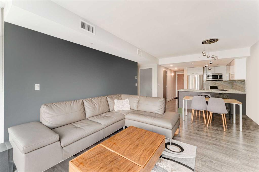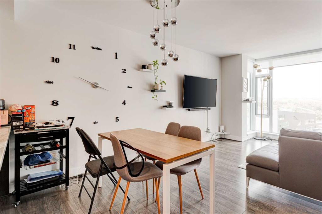 Welcome to Evolution in the heart of the East Village, where you'll find this exceptional 2-bedroom, 2-bathroom + Den apartment with 2 parking stalls and separate storage. Experience an incredible living environment surrounded by a variety of nearby activities, including a playground, off-leash dog park, extensive pathways, and a range of shops. Plus, the vibrant downtown scene of Calgary is just a short walk away. This unit on the northeast corner of the building offers river views and plenty of natural light. The spacious open floor plan is perfect for entertaining, with a well-appointed kitchen and a primary bedroom featuring a private ensuite. The second bedroom shares a stylish bathroom with the common area. Don't miss out on this opportunity - contact your preferred realtor today and make this extraordinary apartment your next home!