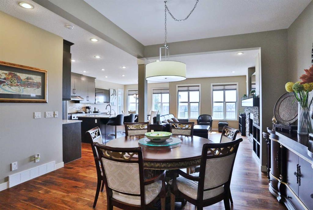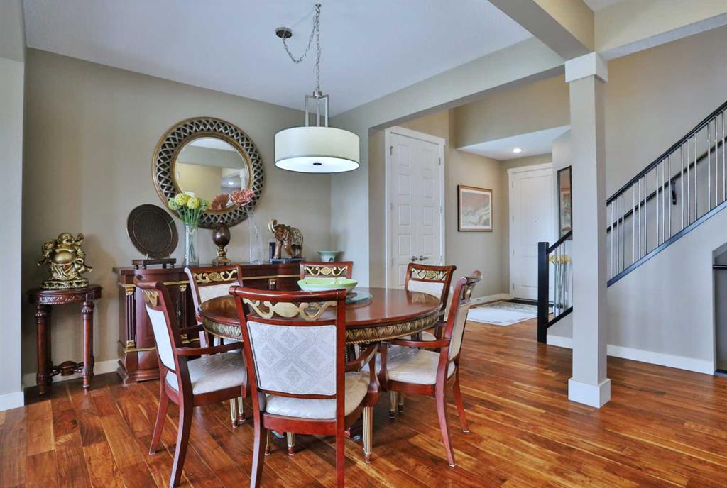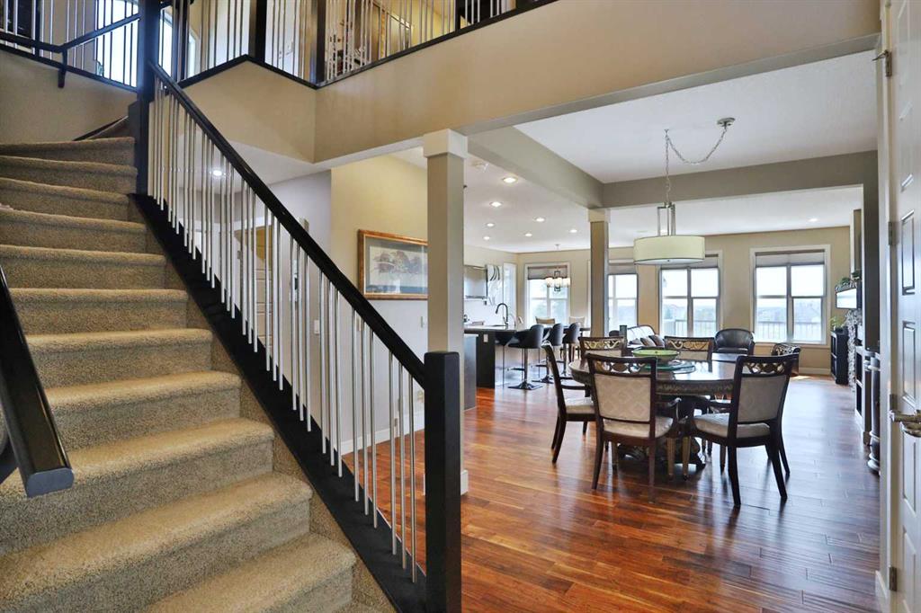Backing onto a winding ravine & walking trails is this sensational custom home in the popular Symons Valley community of Sage Hill. Offering a total of 4 bedrooms & over 3200sqft of air-conditioned living, this extensively upgraded Trico-built two storey walkout enjoys Acacia engineered hardwood floors & granite countertops, sleek kitchen with stainless steel appliances, heated 3 car garage & fully landscaped pie lot...all in this quiet cul-de-sac just minutes to area shopping & parks. This incredible one-owner home is perfectly designed for both family living & entertaining, featuring the main floor with 9ft ceilings & an expanse of windows, sun-drenched living room with stone-facing gas fireplace, spacious open concept formal dining room, breakfast nook with access onto the large balcony & fully-loaded kitchen with full-height cabinets & soft-close drawers/doors, island with extended counters & upgraded stainless steel appliances including Blomberg dishwasher, water purifier & Dacor built-in convection oven & gas cooktop. Upstairs there are 3 fantastic bedrooms highlighted by the private owners' retreat with wide-open ravine views & electric fireplace, walk-in closet with organizers & luxurious soaker tub ensuite with double vanities, heated floors & oversized glass shower. Between the bedrooms is the bonus room with floor-to-ceiling built-ins, 10ft ceilings & an alcove with built-in bench & desk. The walkout level - with infloor heating & nominal 9ft ceilings, is finished with a rec room with TV cabinet (included), exercise area, 4th bedroom with walk-in closet & full bath...plus lots of extra space for storage. Convenient 2nd floor laundry complete with LG steam washer & dryer, sink & built-in cabinets. The heated & oversized 3 car garage is equipped with both hot water tap & central vacuflo outlet with 1 of 2 sets of attachments. Additional extras & upgrades include granite counters & Toto toilets in the bathrooms, built-in ceiling speakers on all 3 levels, Hunter Douglas blinds, Ecobee thermostat, BLINK video doorbell, new boiler for the infloor heating in 2022, indirect-fired stainless steel hot water tank for the house, 9ft ceilings on the main & upper levels, irrigation system, 7.1 speaker wiring in the bonus room & 5.1 speaker wiring in the walkout level, aggregate driveway/walkways & large storage shed in the fenced backyard with covered patio, interlocking stone patio & gate to the ravine & walking paths. A truly exceptional home in this prime location only minutes to shopping (Sage Hill Crossing, Sage Hill Quarter, Walmart, TnT, Gates of Nolan Hill & Beacon Hill) & easy access to major transportation corridors (Symons Valley Parkway & Sarcee/Shaganappi/Stoney Trails) to take you to the University of Calgary, Foothills Medical Centre, LRT, downtown & beyond!