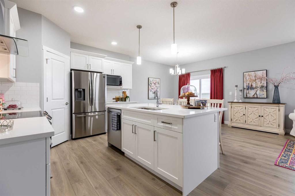 Explore new heights in Sora! This developing community in SE Calgary offers young families plenty of space and amenities to flourish. Explore the convenience of nearby urban attractions, including top-notch shopping and dining. Sora's natural wetlands and parks feature picturesque walking paths, trails, boardwalks, and waterside seating, ensuring nature is always close at hand. Plus, for those seeking more adventure, the Rocky Mountains are only an hour away! From Akash Homes comes the 'Bedford-Z'; this zero lot line home offers stunning features, quality craftsmanship, and an open-concept floor plan that makes day-to-day living effortless with its functional design. Your main floor offers 9' ceilings, laminate flooring, and quartz counters. You'll enjoy a spacious kitchen with an abundance of cabinet and counter space, soft-close doors and drawers, plus a walk-through pantry! Your living room offers comfort and style, with an electric fireplace and large windows for plenty of natural light. Rest and retreat upstairs, where you'll enjoy a large bonus room plus 3 bedrooms, including a primary suite designed for two with its expansive walk-in closet and spa-inspired ensuite! **PLEASE NOTE** PICTURES ARE OF SIMILAR HOMES; ACTUAL HOMES, PLANS, FIXTURES, AND FINISHES MAY VARY AND ARE SUBJECT TO AVAILABILITY/CHANGES WITHOUT NOTICE.