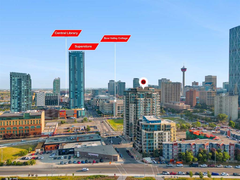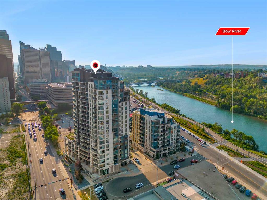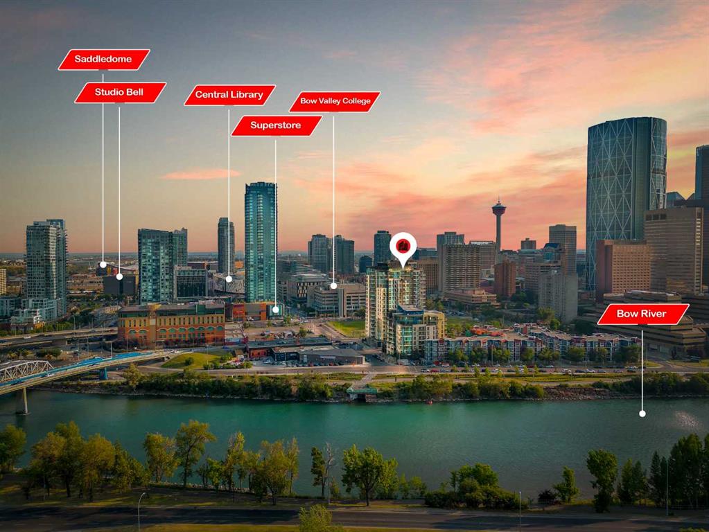 Public Remarks HIGH END CONDO, CONVENIENT DOWNTOWN LOCATION, 1 BED, 1 BATH, BALCONY - GYM, HEAT AND WATER INCLUDED - ON SITE MANAGEMENT, VISITOR PARKING, CONCIERGE - This condo is perfect for a first time home buyer and includes amenities and professional management that adds to the convenience of living DOWNTOWN. This unit is located on the 11th floor overlooking the BOW RIVER and the large BALCONY is perfect for a morning cup of coffee. Entering you are met with your kitchen with all STAINLESS STEEL APPLIANCES, IN UNIT LAUNDRY and an open living space (renders shown). A 4PC ensuite bathroom with spacious bedroom and WALK IN CLOSET, complete this condo. This condo is in a solid location close to shops, walking/bike paths and includes WATER AND HEAT.