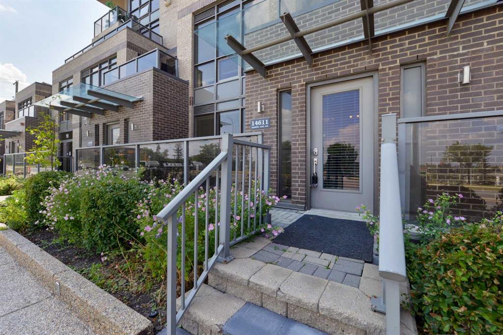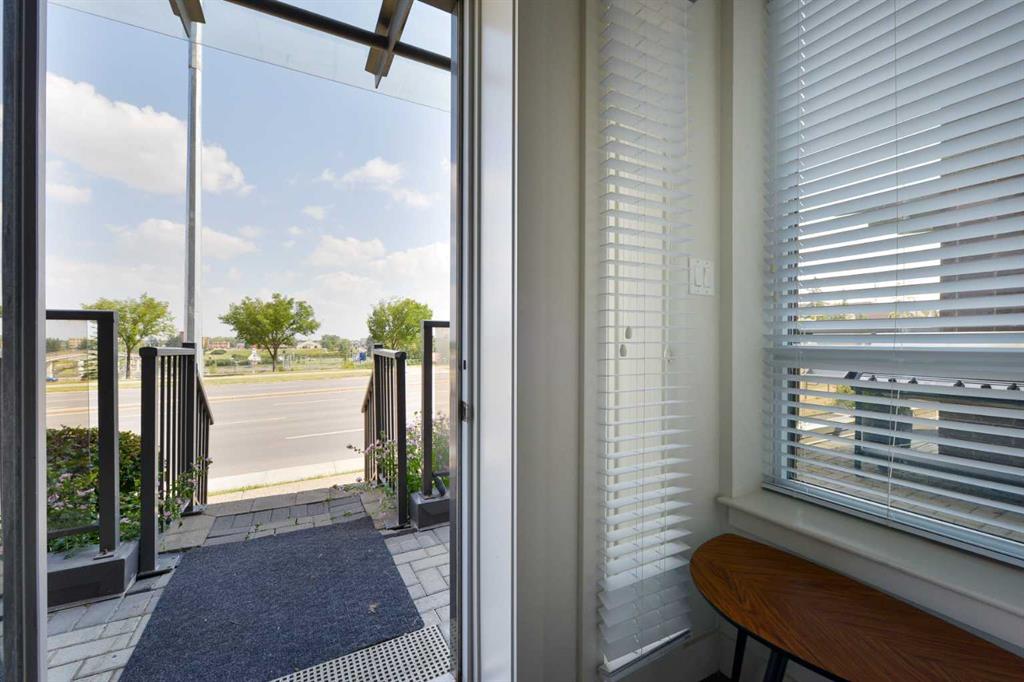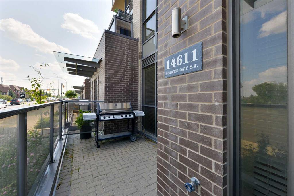This CONCRETE townhome with high ceilings ensures quiet between neighbours and is in the desirable community of Shawnee Slopes, within easy walking distance to the LRT, major roadways as well numerous shops and restaurants. What makes this property so desirable is its location beside Fish Creek Park. Fish Creek Park is Canada’s second largest Provincial Park, larger than Vancouver’s Stanley Park. As you enter the townhome, The first of 2 private patios greets you. A separate living area is flooded with natural sunlight throughout the day. The dining area has ample room for a good-sized table. The chef’s kitchen offers quartz countertops, stainless steel appliances, and an abundance of storage as well as an additional large storage under the stairs. The breakfast bar provides an added eating area for more casual dining. A discreet powder room completes the main floor. Upstairs the large primary bedroom offers an additional private patio and fabulous ensuite. The second bedroom is adjacent to the in-suite laundry and second full bathroom. The windows in the home are specialty triple pane, you will not hear any road noise inside the unit. Are you a working professional with your own business? This unit allows for you to run your professional business from home! If you are looking for a townhome surrounded by amenities, City transit, as well as exceptional outdoor living next to Fish Creek Park, this well priced townhome will not disappoint.