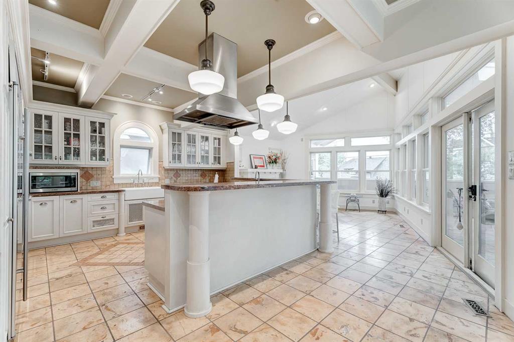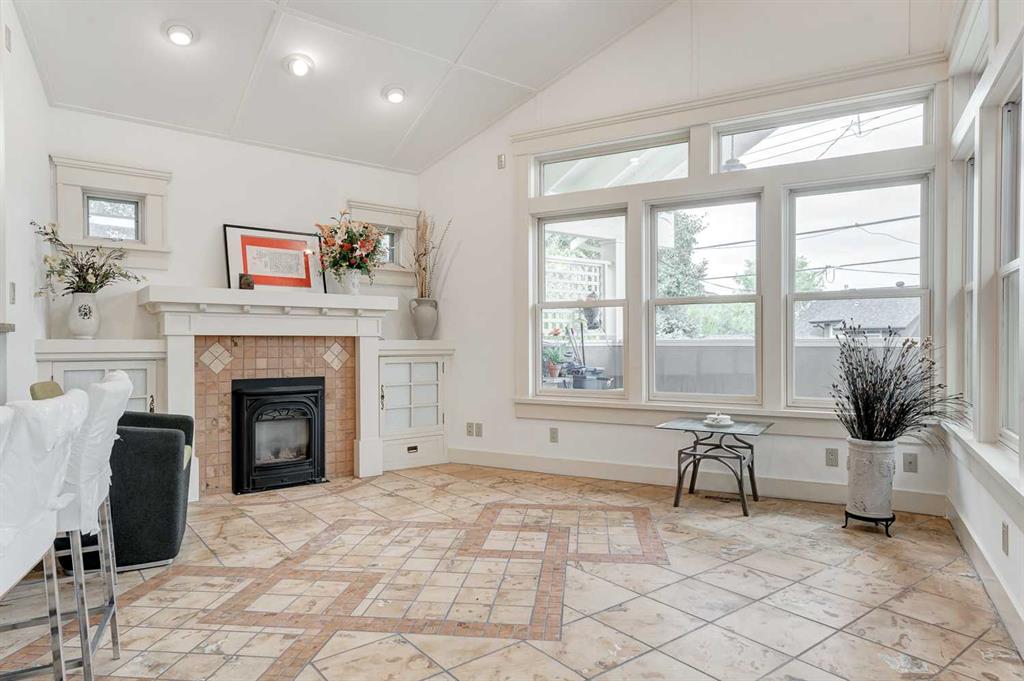 Public Remarks Location, Location, Location. This great home is nestled on a very quiet street in the heart of prestigious Scarboro. This home has a total living space of 4,353 sq. feet and boasts of historical tradition and modern renovations. The front of this home has the history of red brick and a sprawling veranda, where you can relax and gaze across the street at the lovely park. The inside welcomes you with a large foyer and a warm inviting living room with a wood burning fireplace. To the left is the main floor office filled with character, wood burning fireplace, built-in shelves and lots of natural light. Next to the office is a sitting area with a Sub-Zero wine beverage fridge and a Miele coffee center for those times when you want to relax with family or clients. The formal dining room has floor to ceiling built-in cabinets and large windows overlooking the gardens. Then there is the modern part of the house with an architectural, gourmet Kitchen designed and built by industry leader Downsview Kitchens, constructed with unique large windows to let the morning sunshine in. The kitchen/family room includes a vaulted ceiling with extended accented coved trim beams, creating an open and warm friendly setting. A large sculptural island, with curved, double-deck granite countertops, gives the chef of the house a prominent area to cook their amazing dinners. The kitchen includes a Sub-Zero 48” fridge, Thermador, Gaggenau appliances, 2 sinks and charming, rustic Italian ceramic floor tiles. Just off the kitchen / family room is a covered patio with skylights for that outdoor retreat, where you can enjoy the peace and quiet of the outdoors. The second level boasts 4 large bedrooms. The primary bedroom is extra-large with a spa-like en-suite bathroom, custom-made floor to ceiling dressing cabinets, a walk-in closet, massive windows with downtown views and a Juliet balcony. The 2nd bedroom has a built-in sink/vanity and walk-in closet. The 3rd bedroom has custom-made wardrobe cabinets. Beside the 4th bedroom enjoy the sunshine in the south-facing sunroom overlooking the park. The lower level provides a substantial sized living/rec room with a wet bar. There is also a fitness area to enjoy your morning workouts. Then, there is a 5th bedroom and a 4-piece bathroom. The laundry area has a deep cast-iron double sink and a laundry chute. The oversized double garage is complete with a workshop area. The main steam boiler system (installed in 2017) provides extremely comfortable radiant heating in winter plus 2 additional boiler/furnace for reliable heating. Situated in such an enclave, calm, park-like setting, yet only minutes away to the downtown core. Scarboro has access to top ranking schools, City of Calgary LRT and restaurants on 17th Ave.