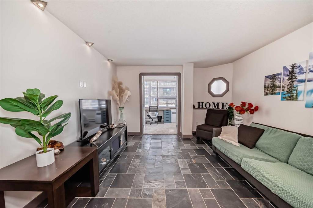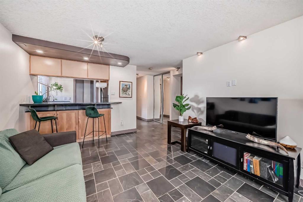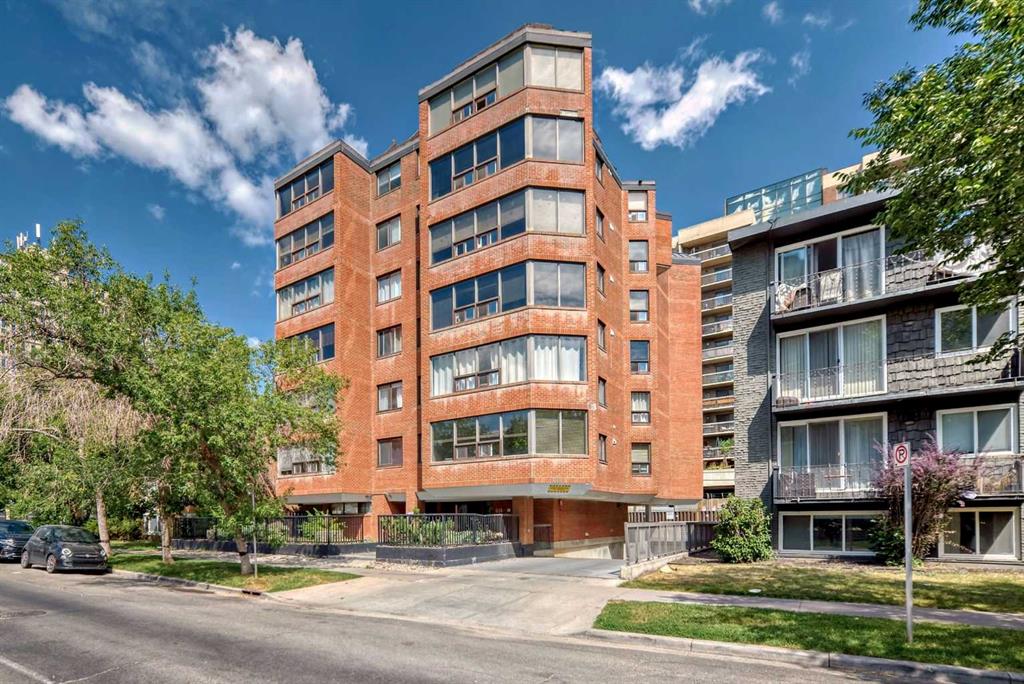 Public Remarks Welcome to Mariposa Gardens! This little gem checks all your boxes! An exceptional opportunity for discerning buyers seeking a harmonious blend of urban convenience and relaxed living. This distinctive seven-story building stands out with its unique design of just four corner units per floor, providing enhanced privacy and an abundance of natural light. Upon entering, you'll be greeted by a spacious, open-concept living area with ceramic tile flooring. The modern kitchen features granite countertops with raised breakfast bar, plenty Maple cabinetry, and stainless steel appliances. The primary bedroom is very spacious, it has a walk-in closet and direct access to the full bathroom. Beautiful double French doors lead to the second bedroom which is big enough for a single bed and a large desk, it also has a lot of nature lights from the many large windows. Tucked away by the kitchen you have the stacked washer and dryer, and a storage/pantry space providing ample room for all your essentials. The parking is in the heated and secured underground parkade. There is also a storage locker in the parkade. Parking is included in the condo fee, the storage locker is leased for $20 per month. The whole roof of the building is an amazing 360 degree rooftop patio, you will be able to see the fireworks from the Stampede Ground as well as the Calgary Tower, and the beautiful cityscape, a great place to do some gardening, entertain or just chill. The building is ideally situated on a quiet street within a short walk to Western Canadian High School, as well as a variety of restaurants, pubs, and boutique shops. Short-term rental is permitted in the building. Truly a comfortable and affordable home, perfect for first-time home buyers, downsizers, and investors!