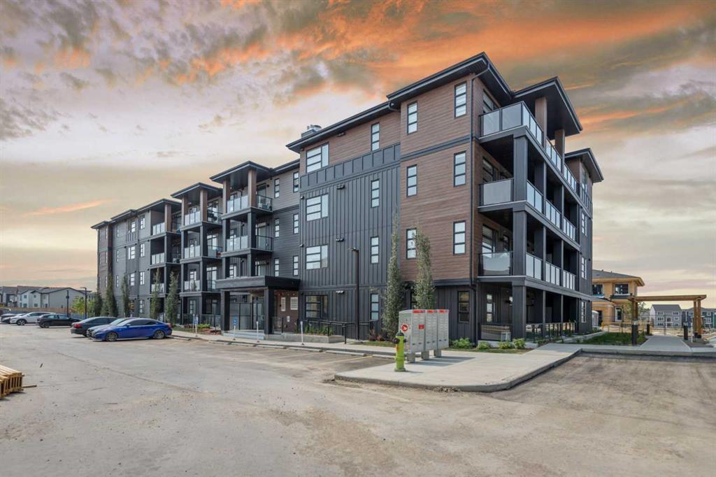 WELCOME TO YOUR NEW HOME IN LIVINGSTON! This BRAND-NEW, one-bedroom condo offers the perfect blend of modern luxury and convenience. Nestled in Calgary's vibrant NW community of Livingston, this unit by the award-winning Logel Homes is ready for immediate move-in. Enjoy a spacious layout featuring soaring 9 ft. ceilings, quartz countertops, trendy vinyl plank flooring, and modern light fixtures. The gourmet kitchen is equipped with stainless steel appliances, upgraded full-height cabinets with soft-closing doors and drawers, and a large island – perfect for entertaining. The cozy bedroom serves as a serene retreat with ample closet space. Additional comforts include AIR CONDITIONING, in-suite laundry, and a generous East-facing balcony with a natural gas line for BBQs. Your new home also comes with TITLED PARKING and an assigned storage locker. Livingston is a dynamic community filled with amenities including the Livingston Pump Track, playgrounds, ponds, and a dog park. Central to the community is “The Hub”, a 35,000 sq ft homeowners association facility offering year-round indoor and outdoor activities. It features 3 skating rinks, tennis courts, a basketball court, a gymnasium, a splash park, a playground, an outdoor amphitheater, banquet space, and more! Enjoy a PRIME LOCATION with easy access to Stoney Trail and Deerfoot. It’s just 20 minutes from the airport and downtown, and only 2 minutes from Carrington Plaza where you’ll find convenient shopping, dining options, and a skate park. This is modern living at its finest – don’t miss out on this incredible opportunity!