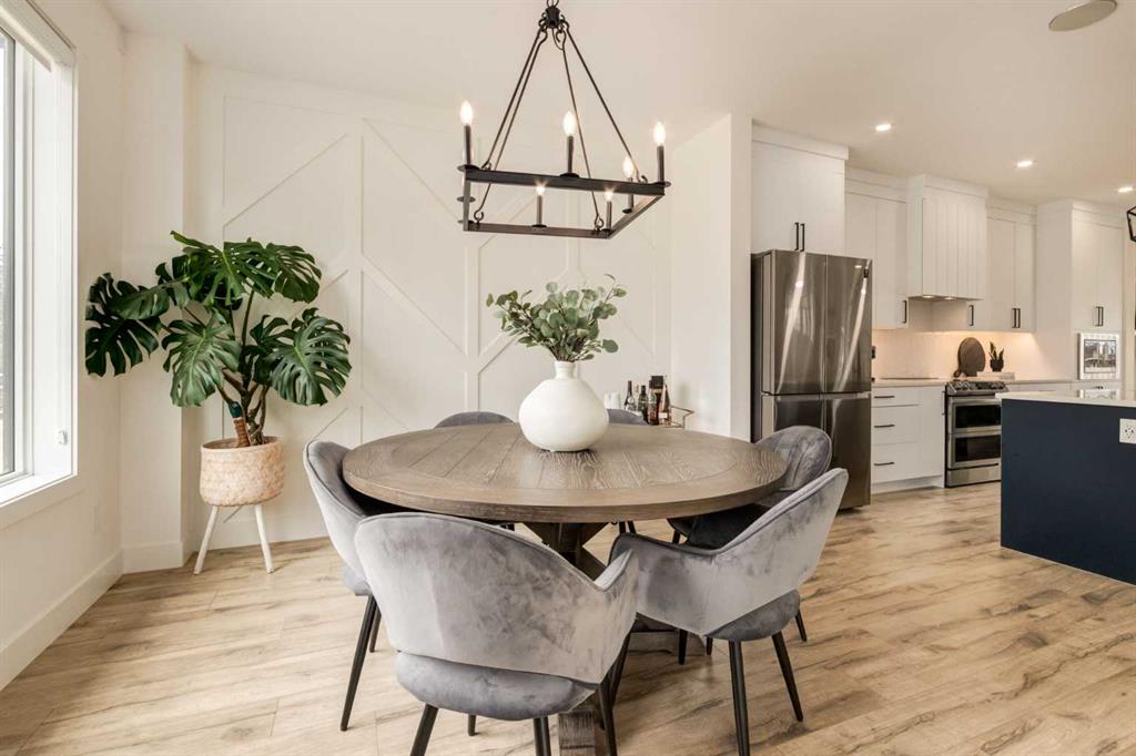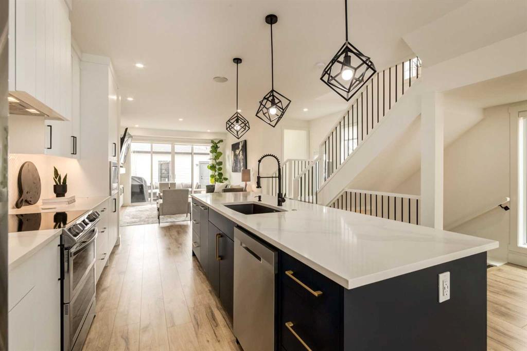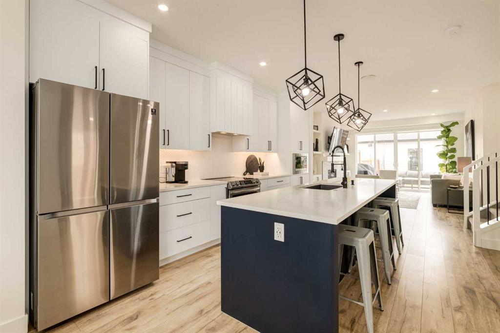 Live your best life riverside in a well-appointed semi-detached infill in Bowness! Situated only a block from the Bow River in one direction and a block from your favorite restaurants and shops on Bowness Road in the other, the location of this meticulous home just can’t be beat! Featuring 2,481 sq ft of developed living space across 3 bedrooms, 3 full baths, a bonus loft space, and a basement rec room! A modern kitchen with a S/S appliance package sits in the center of the main floor, surrounded by stunning shaker-style cabinetry and a large central quartz island. On either side of the kitchen is a spacious dining room and family room, both with oversized windows and ample natural light. The family room includes a gas fireplace with a stunning tile surround and sliding glass doors onto the back deck, and a rear mudroom leads to the Southwest-facing backyard and double detached garage. Upstairs, The master bedroom showcases a soaring vaulted ceiling, an oversized window, a large walk-in closet with custom shelving, and an expansive 5-piece ensuite with more vaulted ceilings, dual under-mounted sinks, a free-standing soaker tub, a separate tiled shower w/ 10mm glass door, and a private water closet. A secondary bedroom with big windows and generously sized closet, an upper floor bonus room or office space or easily converted into a 3rd upper floor bedroom if needed all serviced by a 4-piece main bath. The laundry room features custom cabinetry and a sink for ultimate convenience to complete this amazing upper floor. Downstairs, the spacious rec room includes an electric fireplace and built-in speakers, also features a full wet bar with a quartz countertop, upper and lower cabinets, an under-mount sink, and a tile backsplash. A 4-piece bath and third bedroom w/ a huge walk-in closet and large windows complete this well-designed lower level. With rough-ins for central vac, a sound system, and fully landscaped, how can you go wrong with this beautiful, upgraded infill? Bowness is an attractive community for many looking for the best of outdoor activities, convenient amenities, and a deep-rooted community feel. There's something special about living close to the river – early morning jogs and late-night star gazing to the sounds of rushing water just can't be beat! Don't miss your chance to enjoy life riverside!! OPEN HOUSE SAT NOV. 2 2:00-4:00!!