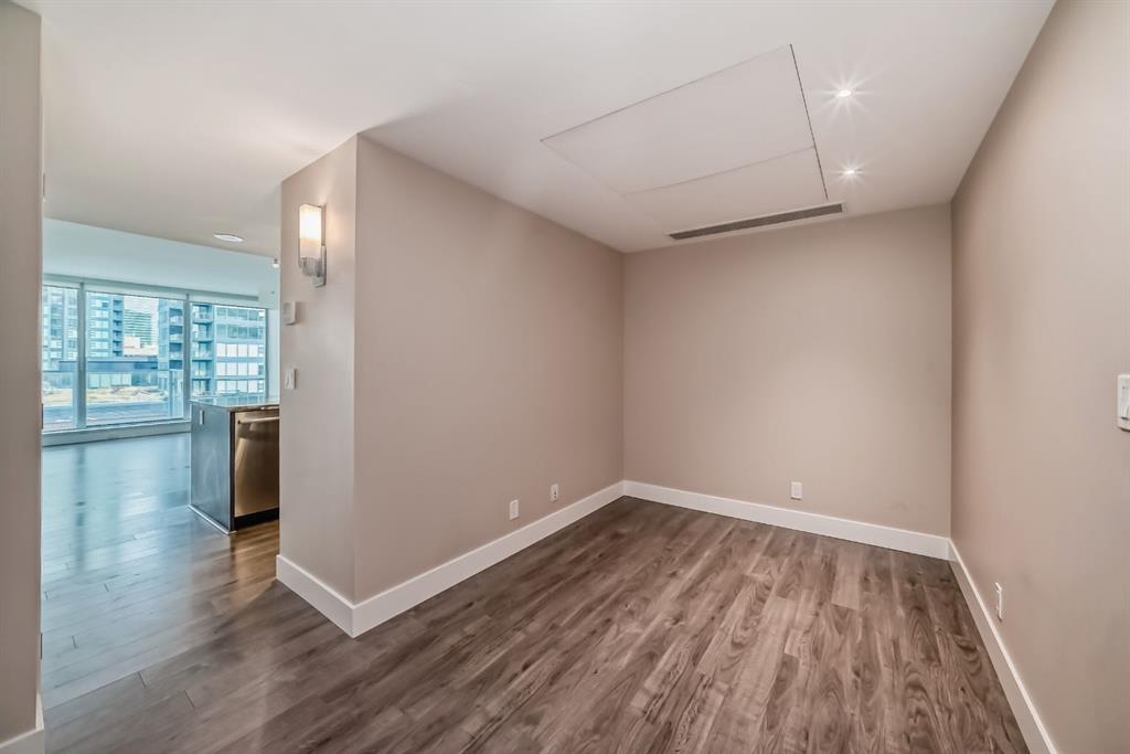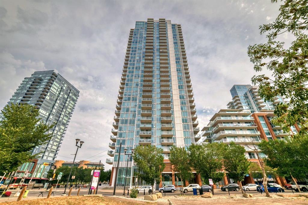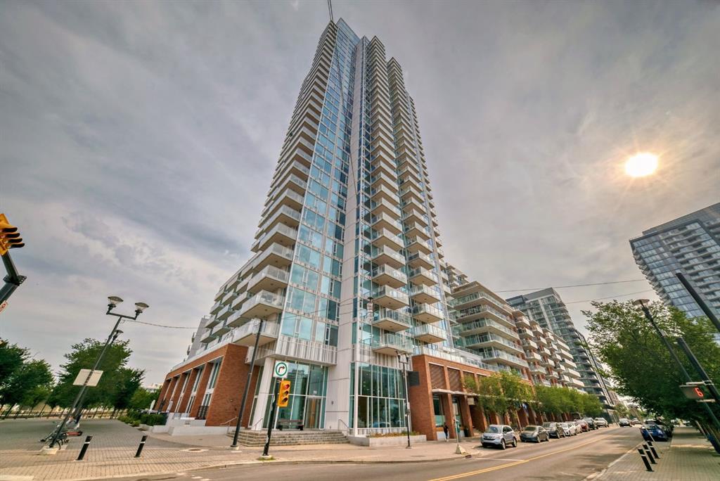 Welcome to downtown living in the sought-after Evolution Building, located in Calgary's vibrant East Village. This stunning 2-bedroom, 2-bathroom, plus den unit features a modern living space with west facing floor-to-ceiling windows that offer stunning views of downtown with underground parking and storage. The sleek kitchen features high-end stainless steel appliances and granite countertops, perfect for entertaining. As you enter the primary bedroom, it offers a walk in closet with a 4-piece ensuite and miraculous views of downtown. The in-suite laundry and large den creates the perfect space for home offices. The Evolution condo offers access to premium amenities, including 24/7 concierge, a fitness centre, steam room, dry sauna, outdoor patio, barbecue, a party room, and an underground heated garage. Located steps from city transit, shopping, dining, entertainment and Calgary landmarks including the Calgary Central Library, Studio Bell, and St. Patrick Island Park, this unit offers the ultimate urban lifestyle. Don't miss this opportunity to make Unit 701 your new home.