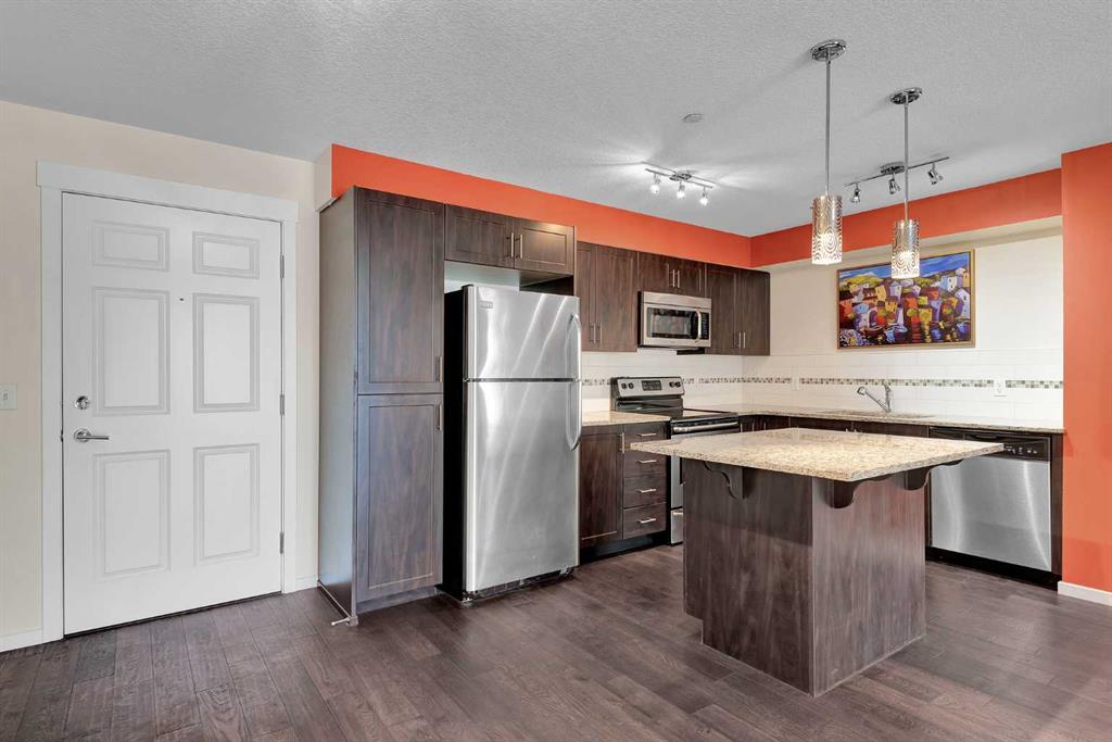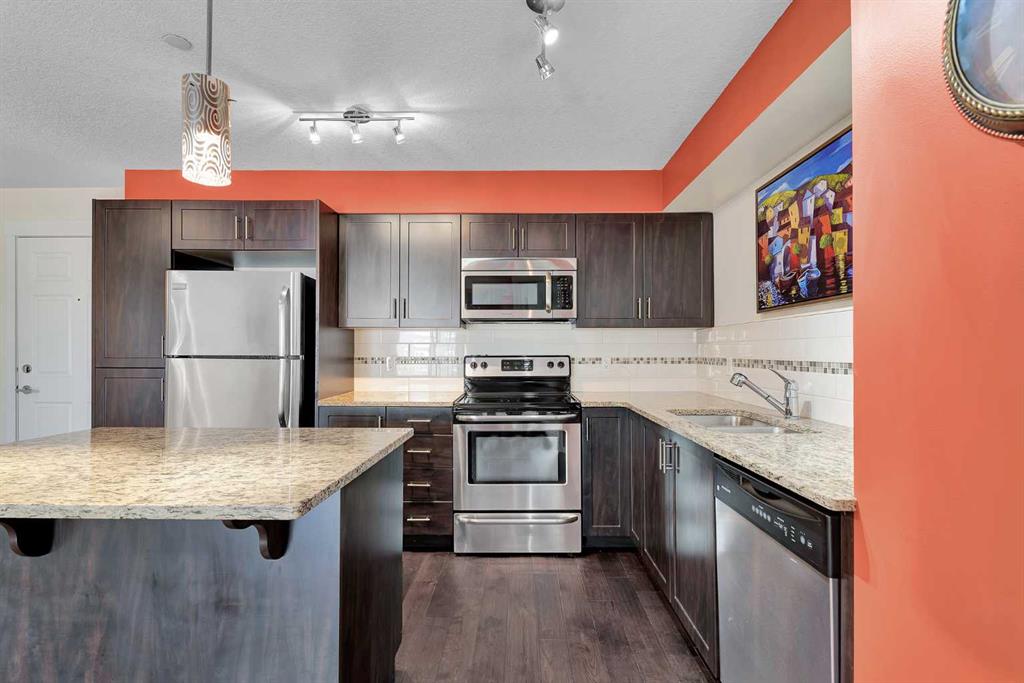 Modern 2-bedroom, 2-bathroom condo, with each bedroom offering its own ensuite bathroom, providing privacy and convenience. This second floor condo features an uber-efficient floor plan with numerous upgrades including glass tile backsplash, portofino floor tile, floating hardwood floors on cork underlay, stainless steel appliances, pendant lighting, granite countertops, spacious kitchen island, venetian blinds, and much more. The balcony with a gas line for BBQs is perfect for cozy evenings. Enjoy the luxury of in-suite laundry and keep belongings organized with the spacious storage locker. Located near transit, schools, parks, playgrounds, shopping, and restaurants, this condo offers easy access to everything you need. With immediate possession available, you can make this your new home sweet home right away.