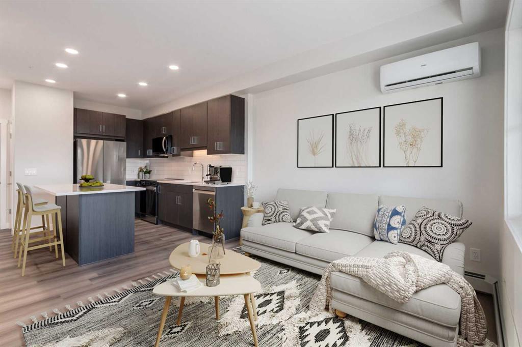 Public Remarks Welcome to Bow 360, an immaculately designed boutique condo building located in the wonderful Wolf Willow area. Your new home is just steps away from the picturesque Bow River, a splendid golf course, and charming walking/biking trails. In addition, you are just a 5-minute drive from grocery stores, shopping venues, boutique fitness facilities, and a diverse array of dining and entertainment options. This stunning main floor, west-facing, 2-bedroom (secondary bedroom can also be a den), 1-bathroom unit comes complete with AC, titled underground parking with additional hanging storage, 9-foot ceilings, quartz countertops throughout, designer tile backsplash, custom full-height cabinetry, stainless steel appliances, luxury vinyl plank flooring throughout, modern fixtures and finishes, en-suite laundry, open concept living, an extra-large island, an extremely large private outdoor patio (with gas line and private walk-off gate), and Alberta New Home Warranty. The Bow 360 building is second to none, built by Cove Properties, one of Calgary’s top multifamily developers with a pristine reputation for quality construction. Taxes are still to be determined.