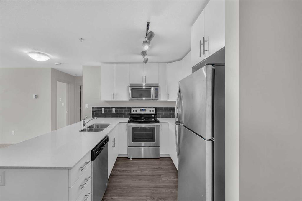 Public Remarks Welcome to McCall Landing! This stunning 2-bedroom, 1- Bathroom condo boasts quartz countertops, stainless steel appliances, and vinyl plank flooring. The thoughtfully designed layout is bright, modern, and open, with plenty of natural light and a sunny balcony. Enjoy the convenience of in-suite laundry and a storage area. This condo comes with 1 underground parking stall. McCall Landing is a building with amenities including a fitness center, bike storage, and a recreation room. Pets are allowed with board approval, and there's even a garden and a dog run! Located in Skyview Ranch, you'll have close access to shopping, amenities, and transit. Make McCall Landing your new home today!