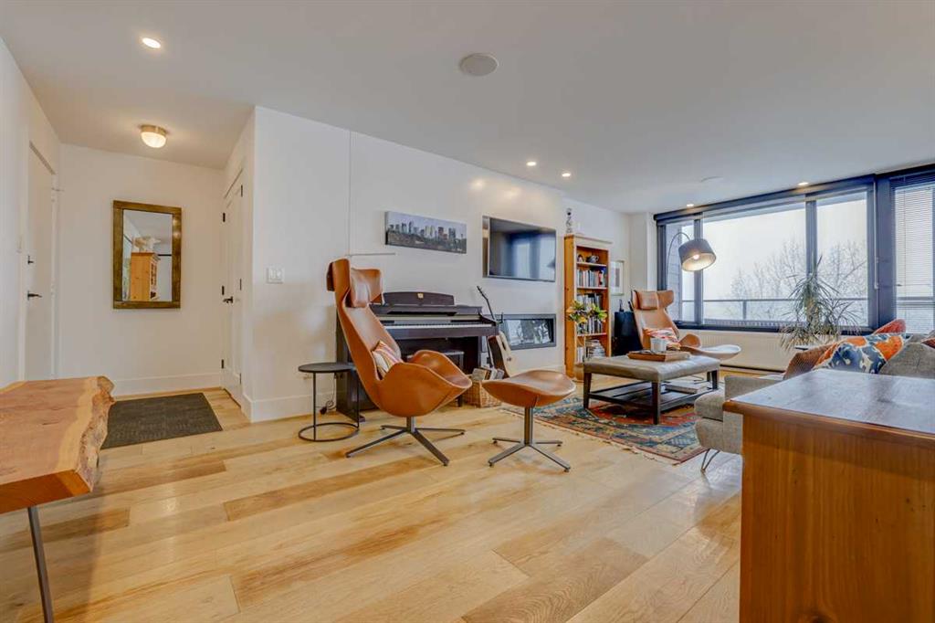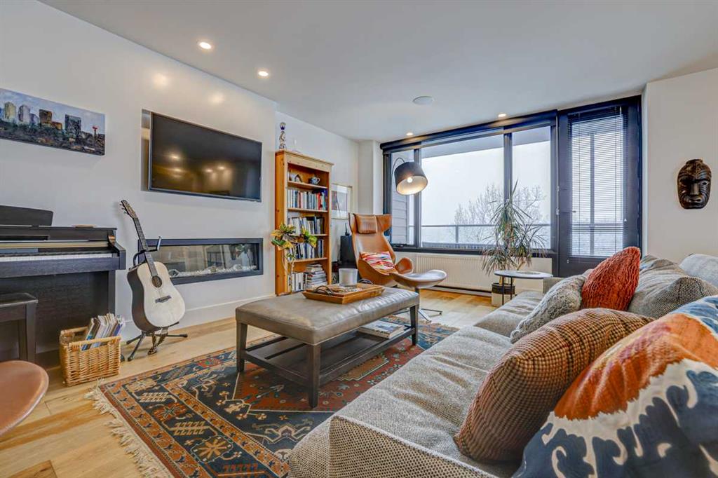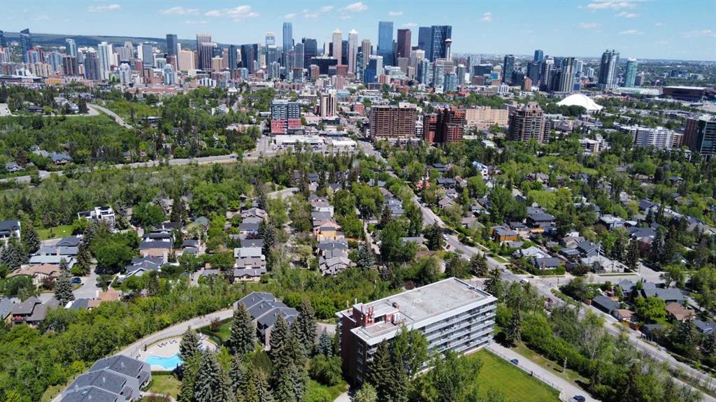 *** Open House 1pm - 3PM Saturday October 19*** Discover urban living at its finest in this captivating 1400 square foot condo now available. The NORTH and SOUTH facing balconies give you the view and the sunshine that make this property unique. Two bedrooms and two bathrooms await you inside, dual storage units and side by side underground parking underneath! Situated in a prime location, this residence boasts abundant natural light that accentuates its contemporary design. Nestled conveniently close to the serene walking paths along the picturesque Elbow River, as well as the Stampede grounds, theaters, and an array of restaurants, this property offers the epitome of convenience and entertainment. The recently redone decks offer breathtaking panoramic views of the dynamic downtown skyline, providing an unparalleled backdrop to daily life and entertaining guests. Experience the perfect fusion of modern elegance and urban convenience in this remarkable condominium. The 2 parking stalls (17 and 18) are conveniently located side by side in the underground parking, with a personal bike lock up unique to the building (separate from the communal bike area). The seasonal pool is available as an option to access, call your realtor for more info!