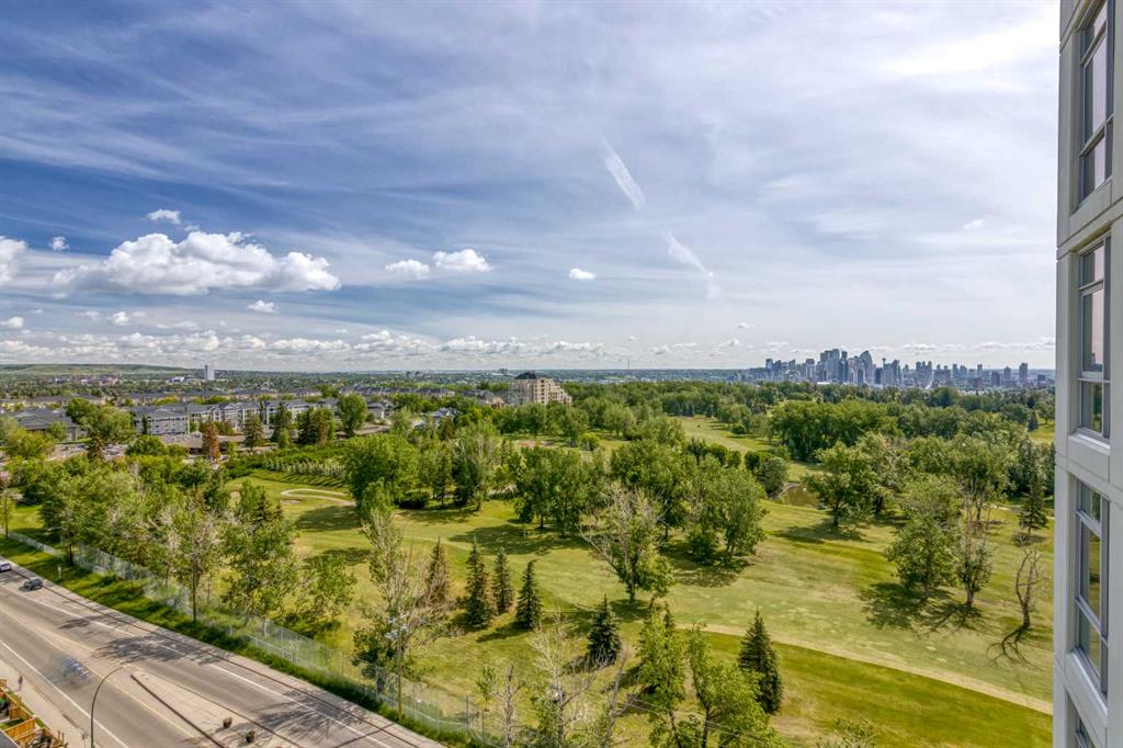 Welcome to this Beautiful Apartment with 2 Titled Parking Stalls, boasting 3 Beds and 2 Baths, conveniently located just off the Bow Trail with the gorgeous Downtown view and a scenic golf course in Spruce Cliff. No carpet for the whole unit! Newer Deluxe Vinyl plank throughout the unit. This unit features a spacious 9’ ceiling and an open floor plan encompassing the Living room and Kitchen. The spacious Living room is enhanced by a large window, and an electric fireplace and leads to a private Balcony offering picturesque views — perfect for enjoying tranquil moments. Newer Quartz Window Sills for all the windows. The generously sized Kitchen showcases granite countertops, a gas stove, and stainless steel appliances, cabinets go up to ceiling height. The Primary Bedroom is complemented by a large window, a spacious walk-in closet, and a 4 pc Ensuite Bath featuring granite countertops. There are two additional good-sized Bedrooms and a second Full Bath with a granite countertop vanity. A good size Den is perfect for your home office. Convenient in-suite Laundry facilities complete this unit. The unit also comes with Air conditioning that is great for those hot Summer days. Residents of this condo apartment enjoy access to an indoor lap swimming pool, hot tub, lounge area, fitness center, and 24-hour on-site security. The unit includes TWO Underground Titled Parking Stalls, a separate Storage Locker, and ample visitor parking. Located mere steps from the golf course and Westbrook C-Train Station, and just minutes from Downtown, Westbrook Mall shopping, restaurants, schools, Edworthy Park, and extensive trail systems—this apartment offers both convenience and lifestyle. Don’t miss out on this exceptional opportunity!