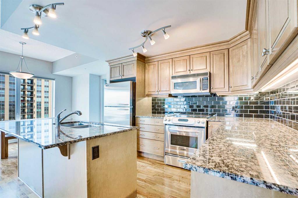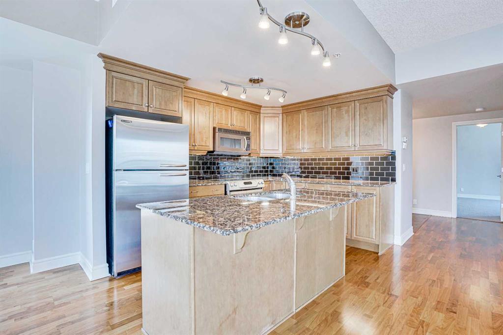 Exceptionally bright Executive Sub Penthouse located at Five West Phase I! This corner unit features two bedrooms, two bath, in suite laundry and large kitchen with room to entertain. Enjoy the option of using one of the two balconies this unit has to offer. Day views offer city, mountain and a sneak peak at the Bow River. Evening views show the beautiful city lights! Plenty of open space to entertain friends and family in the kitchen and living room. The area offers many amenities such as walking/jogging/biking paths as well as shopping and entertainment. Park in underground, heated and oversized titled parking stall in addition to storing your additional items in your assigned storage space. Car wash, friendly concierge...what's left? Don't miss the opportunity to live on 26th floor of this delightful 27 floor complex! Book your showing today!