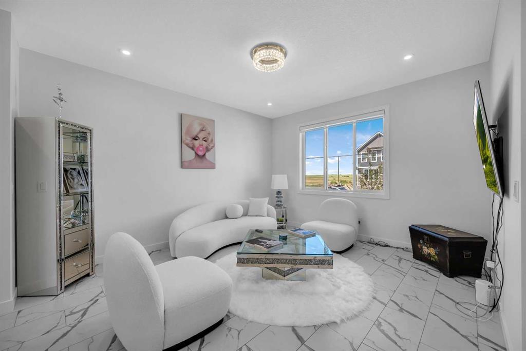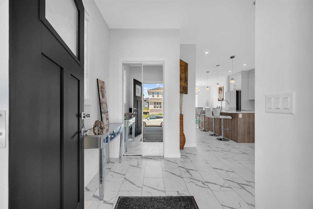 Welcome to the exquisite Chelsea home, a haven of modern elegance and functionality in the vibrant community of Chestermere. This fully finished residence has been thoughtfully designed to provide a move-in-ready sanctuary that seamlessly blends style with practicality. Upon entering, you are greeted by an open floor plan that fosters a sense of togetherness, making it an ideal space for family gatherings and entertaining. The main floor boasts an impressive kitchen adorned with rich cabinetry, upgraded appliances, including a large gas cooktop, and quartz countertops. The thoughtful design extends to upgraded light fixtures and ample storage, creating a culinary haven for the home chef. The main floor also features a tiled mudroom with a 2-piece powder room, offering convenience for everyday living. The dining and living spaces are beautifully appointed, providing an inviting atmosphere for both formal and casual occasions. Ascending to the upper level, you'll discover three bedrooms, a Laundry room with quartz counters and with the primary suite standing out as a spacious retreat. The luxurious 5-piece en-suite in the primary suite features an oversized shower, standalone tub, and tray ceilings, creating a serene oasis within your own home. The fully finished basement, also accessible through a separate side entrance, adds versatility to the property. It includes a fourth bedroom, an additional bathroom, and a spacious family/rec area, offering additional living space for various needs. Outside, an oversized parking pad provides ample space for all your parking needs and recreational toys, reflecting the practicality of this home. Beyond the property's boundaries, Chestermere beckons as a dynamic recreational city, capturing the essence of a laid-back lakeside community. Enjoy the endless opportunities to relax and unwind, all while maintaining convenient access to major routes, Calgary, and the airport. Don't miss the chance to make this residence your own.